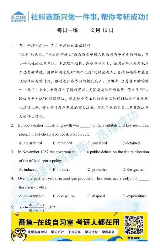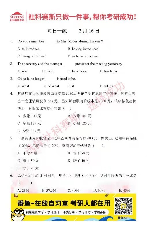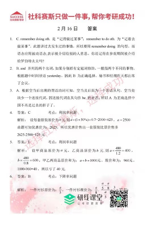 導讀:考研是一場持久戰,保持良好的學習習慣,是能確保復習高效的關鍵。今天社科賽斯MBA備考網小編整理了“2022管理類聯2月16日每日一練及答案”的內容,希望能對廣大考生有所幫助。