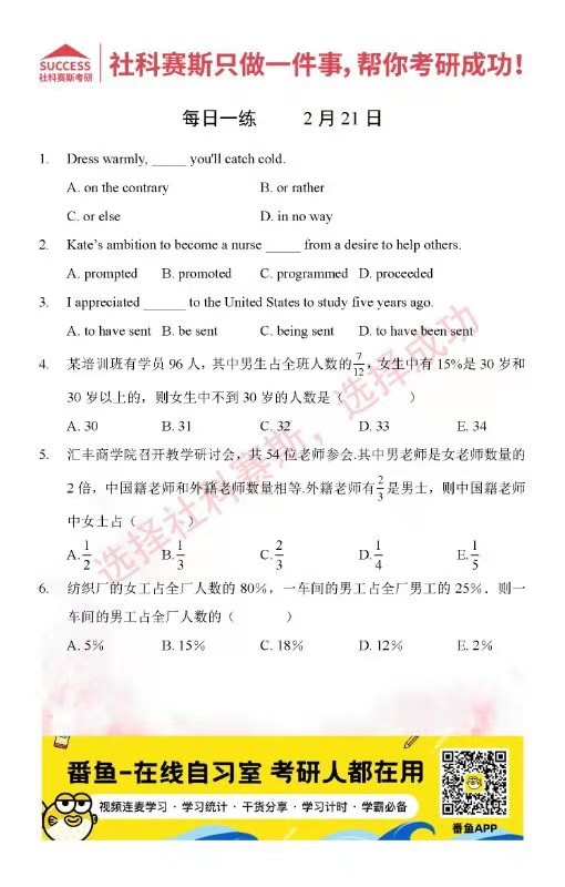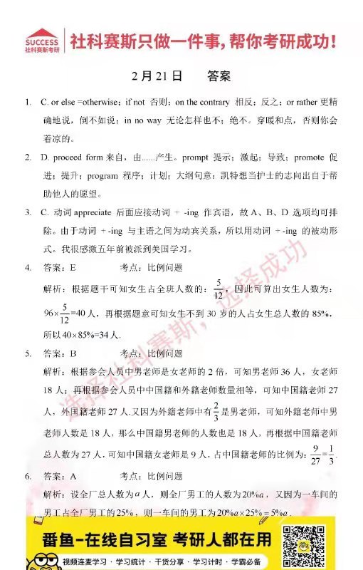 以上就是社科賽斯MBA備考網(wǎng)小編為大家整理“2022管理類聯(lián)考2月21日每日一練及答案”的全部內(nèi)容,希望各位考生堅(jiān)持利用起來,更多每日一練內(nèi)容請(qǐng)持續(xù)關(guān)注MBA備考網(wǎng)管理類聯(lián)考每日一練。