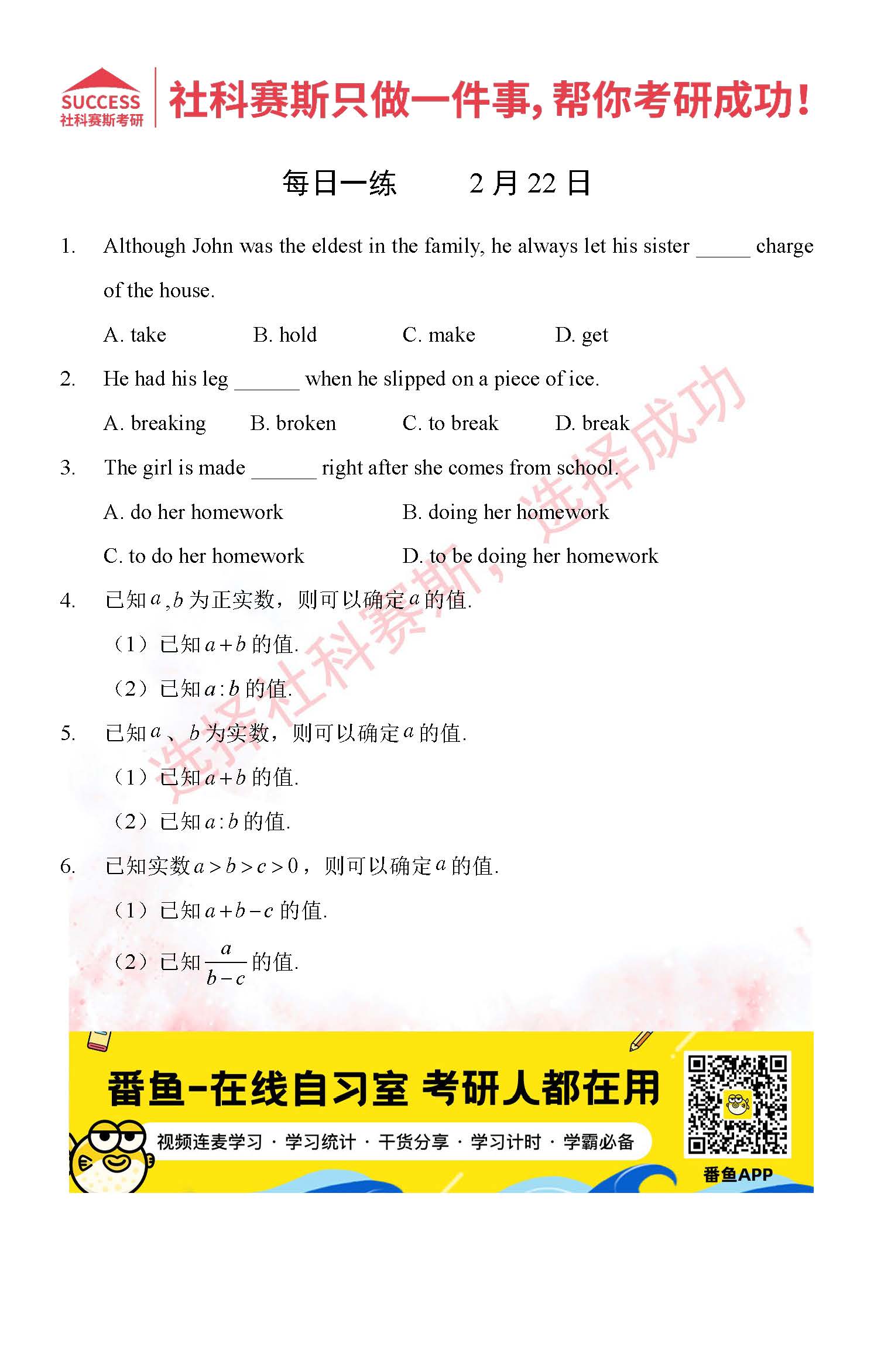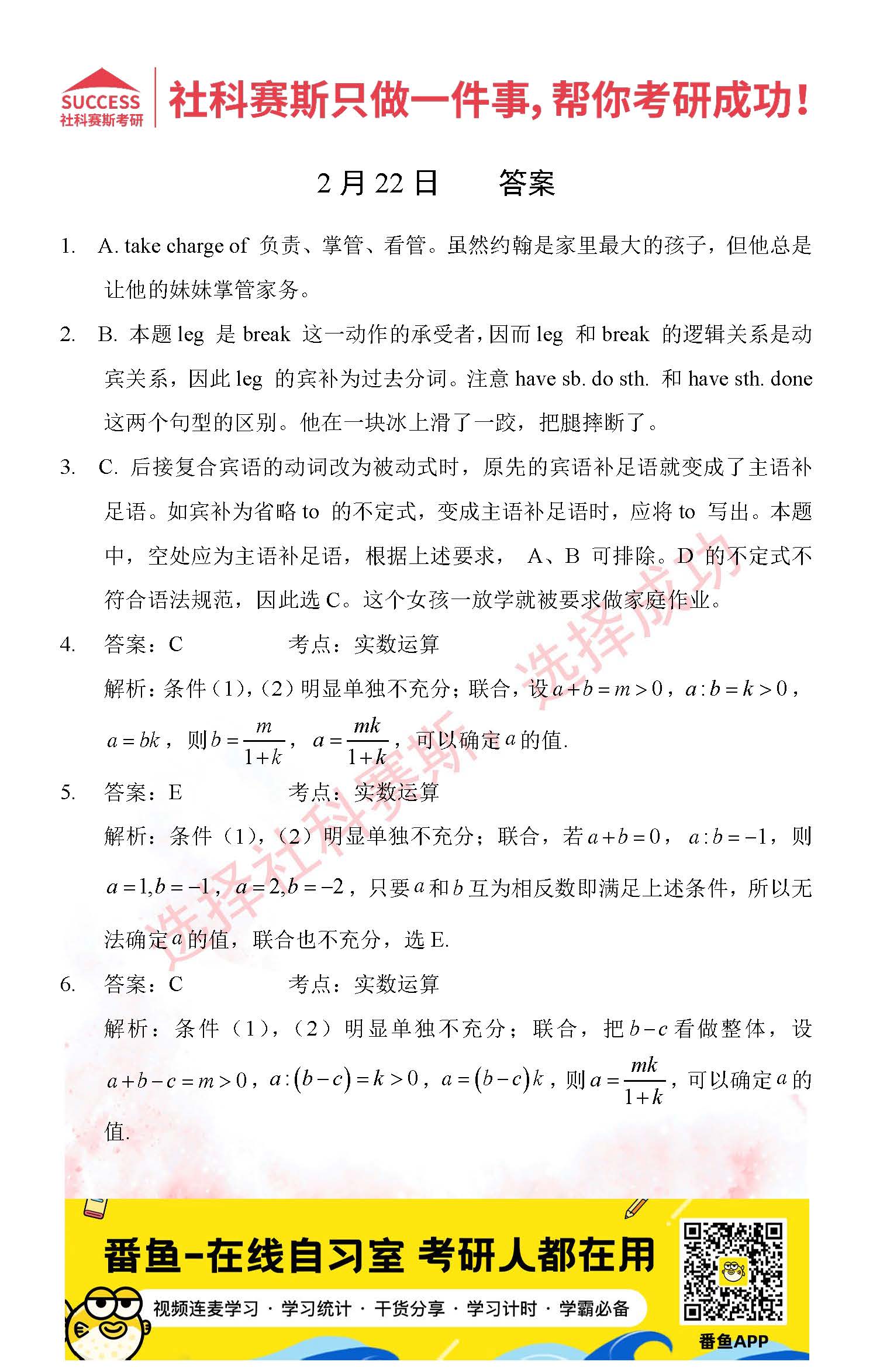 導讀:考研是一場持久戰(zhàn),保持良好的學習習慣,是能確保復習高效的關鍵。今天社科賽斯MBA備考網(wǎng)小編整理了“2022管理類聯(lián)2月22日每日一練及答案”的內(nèi)容,希望能對廣大考生有所幫助。