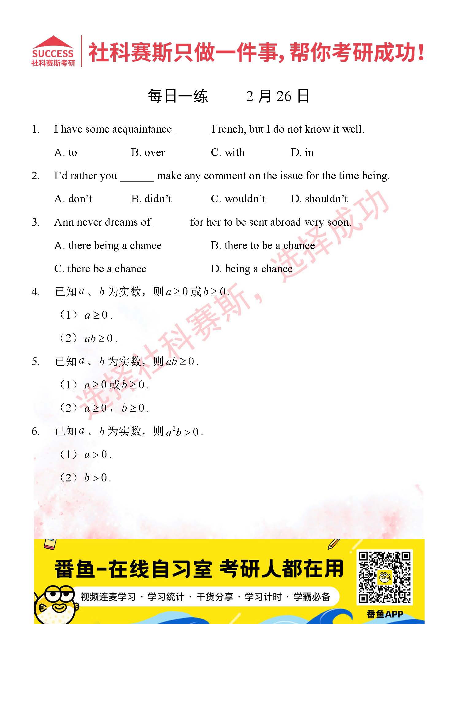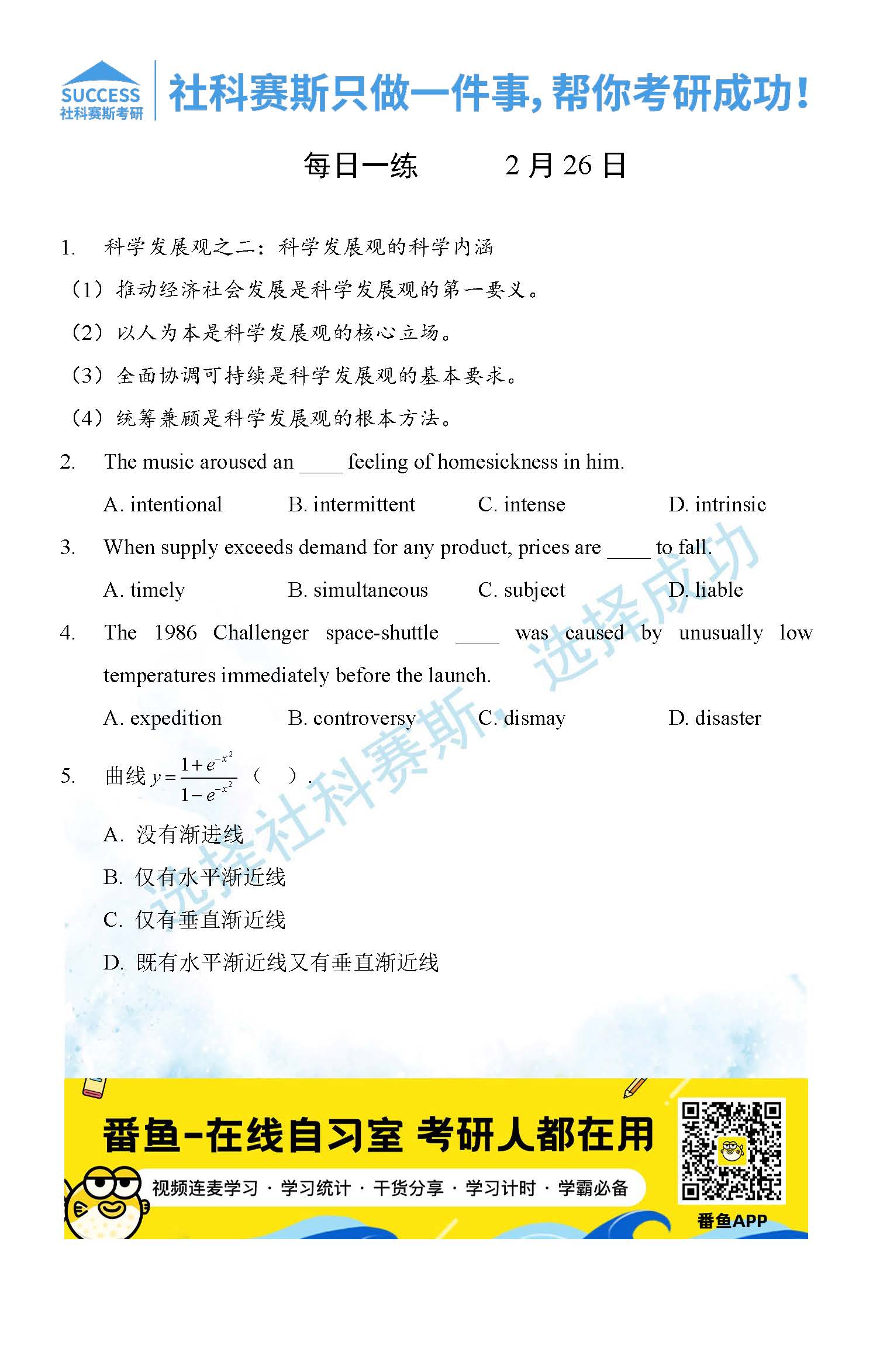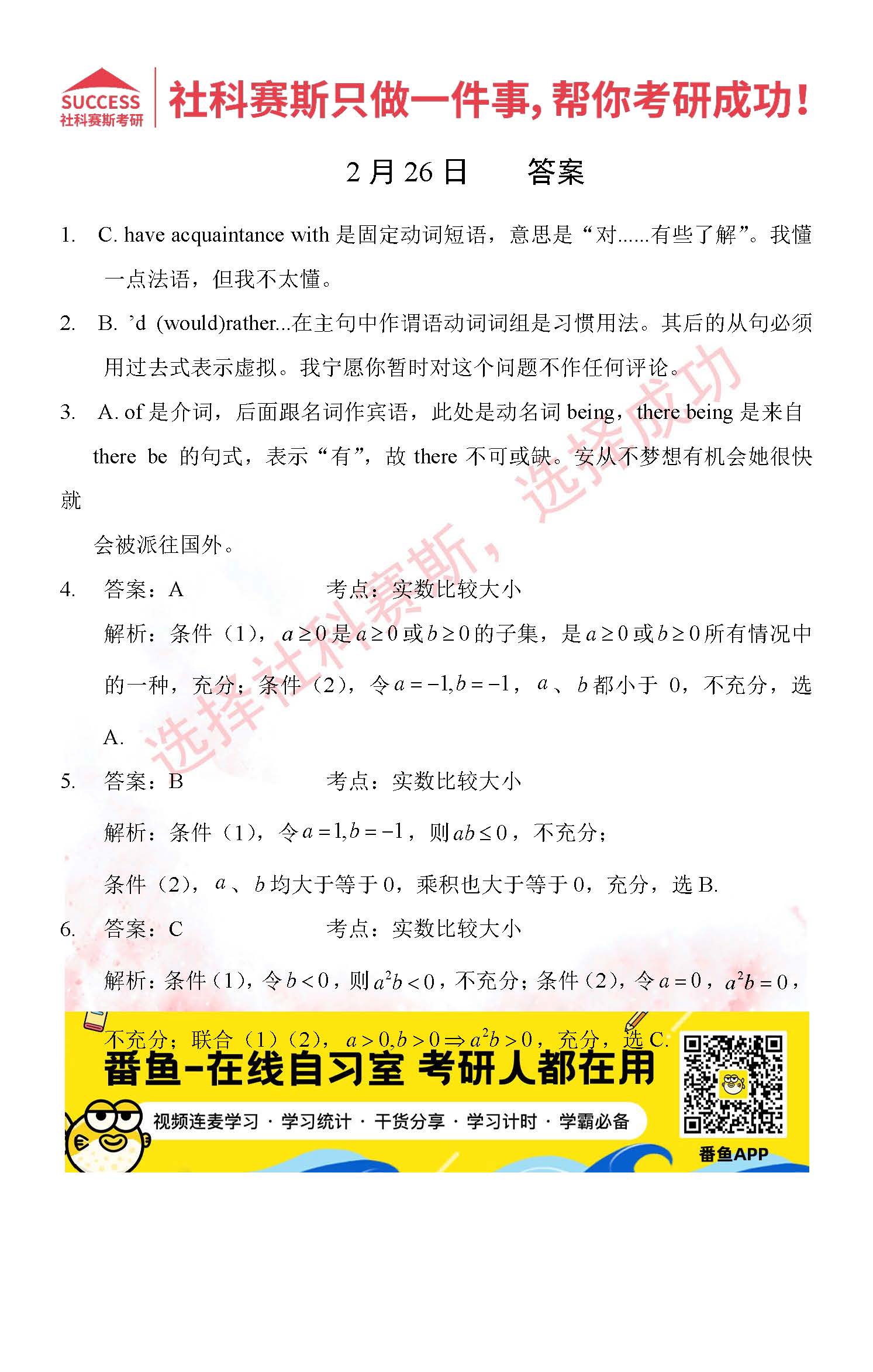 導(dǎo)讀:考研是一場(chǎng)持久戰(zhàn),保持良好的學(xué)習(xí)習(xí)慣,是能確保復(fù)習(xí)高效的關(guān)鍵。今天社科賽斯MBA備考網(wǎng)小編整理了“2022管理類聯(lián)2月26日每日一練及答案”的內(nèi)容,希望能對(duì)廣大考生有所幫助。