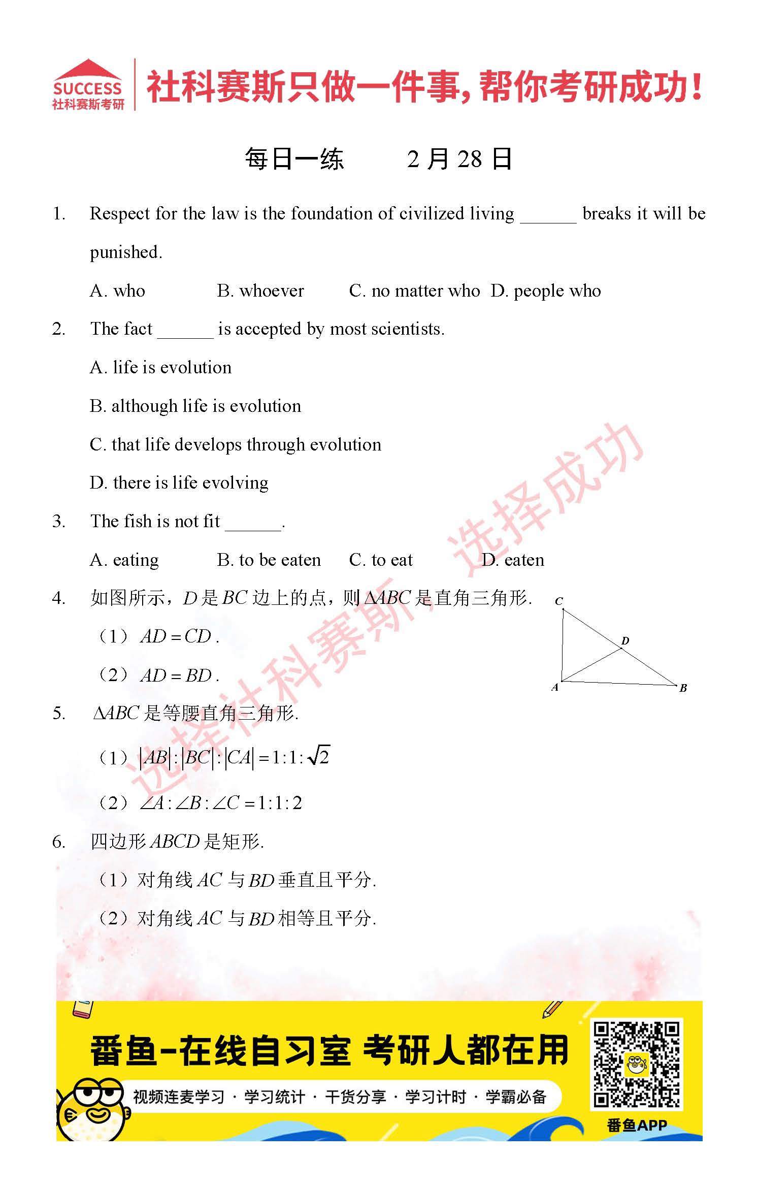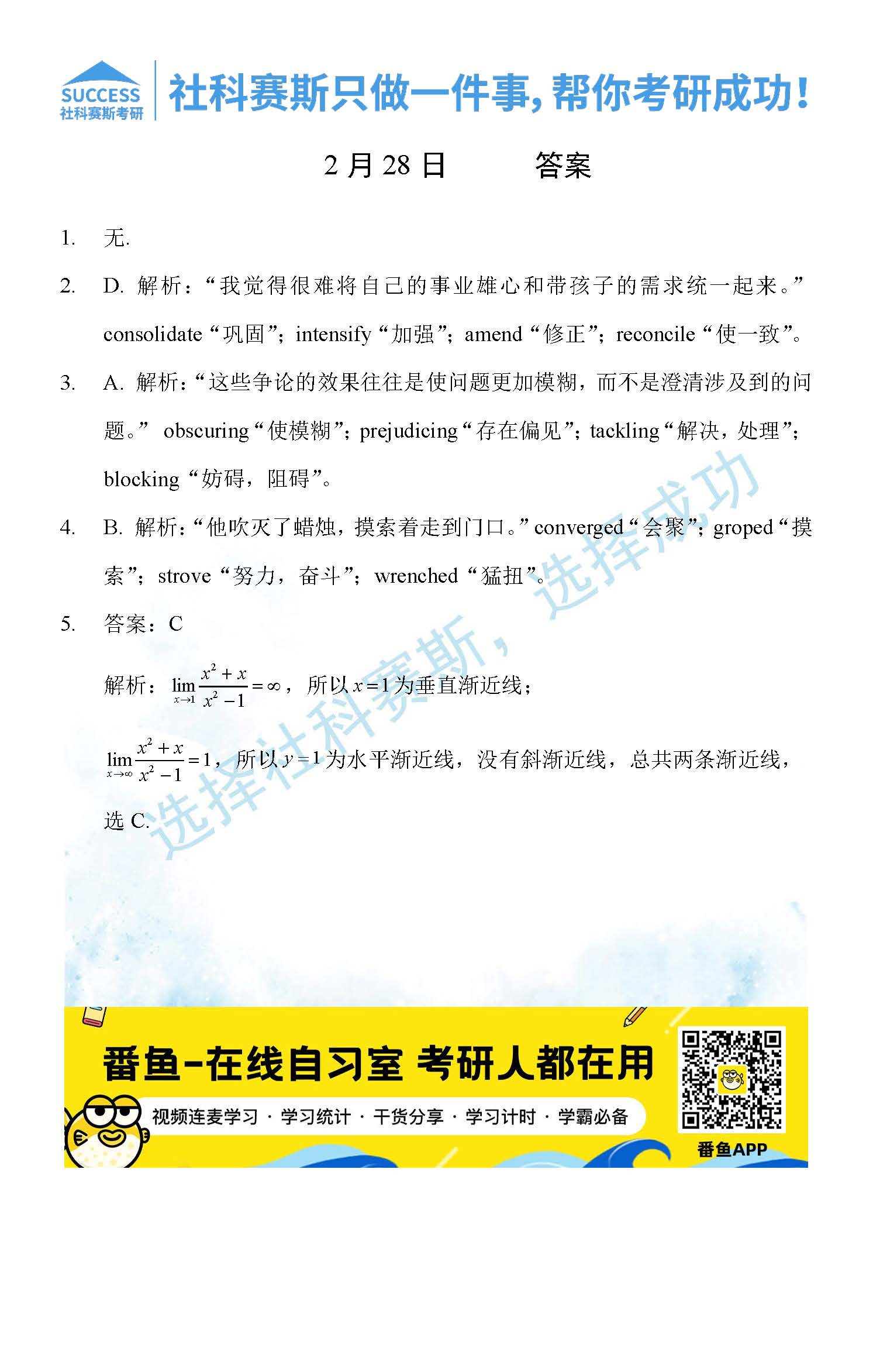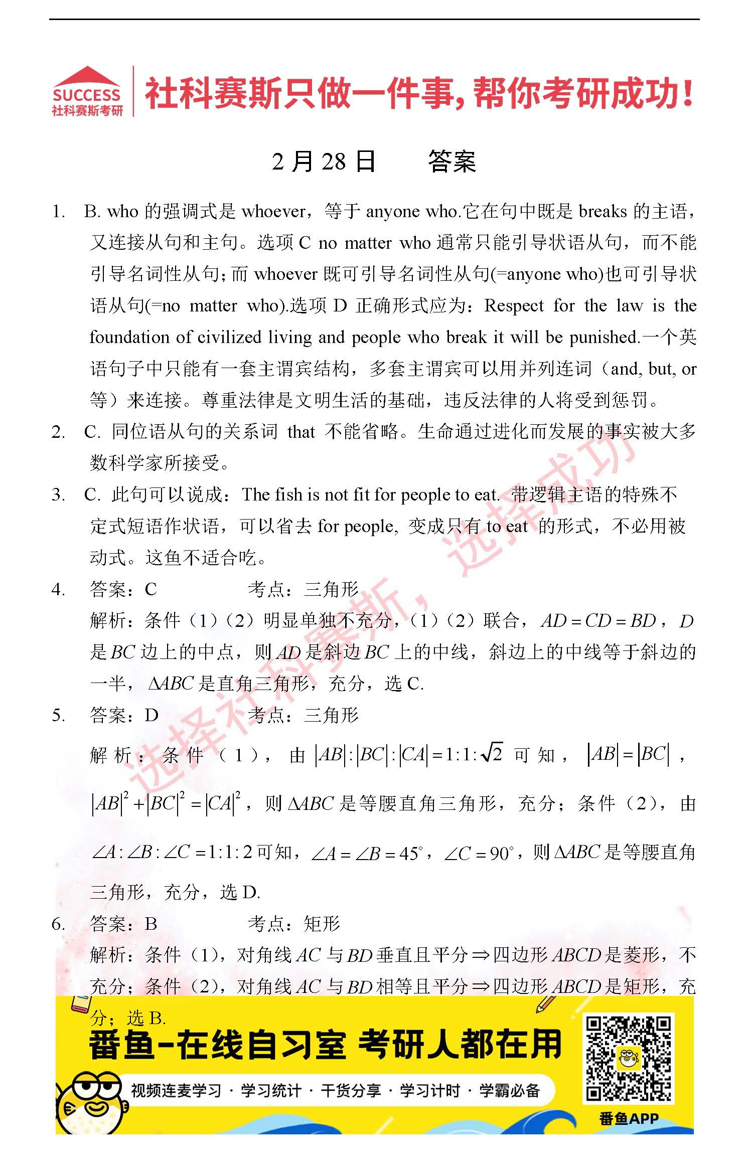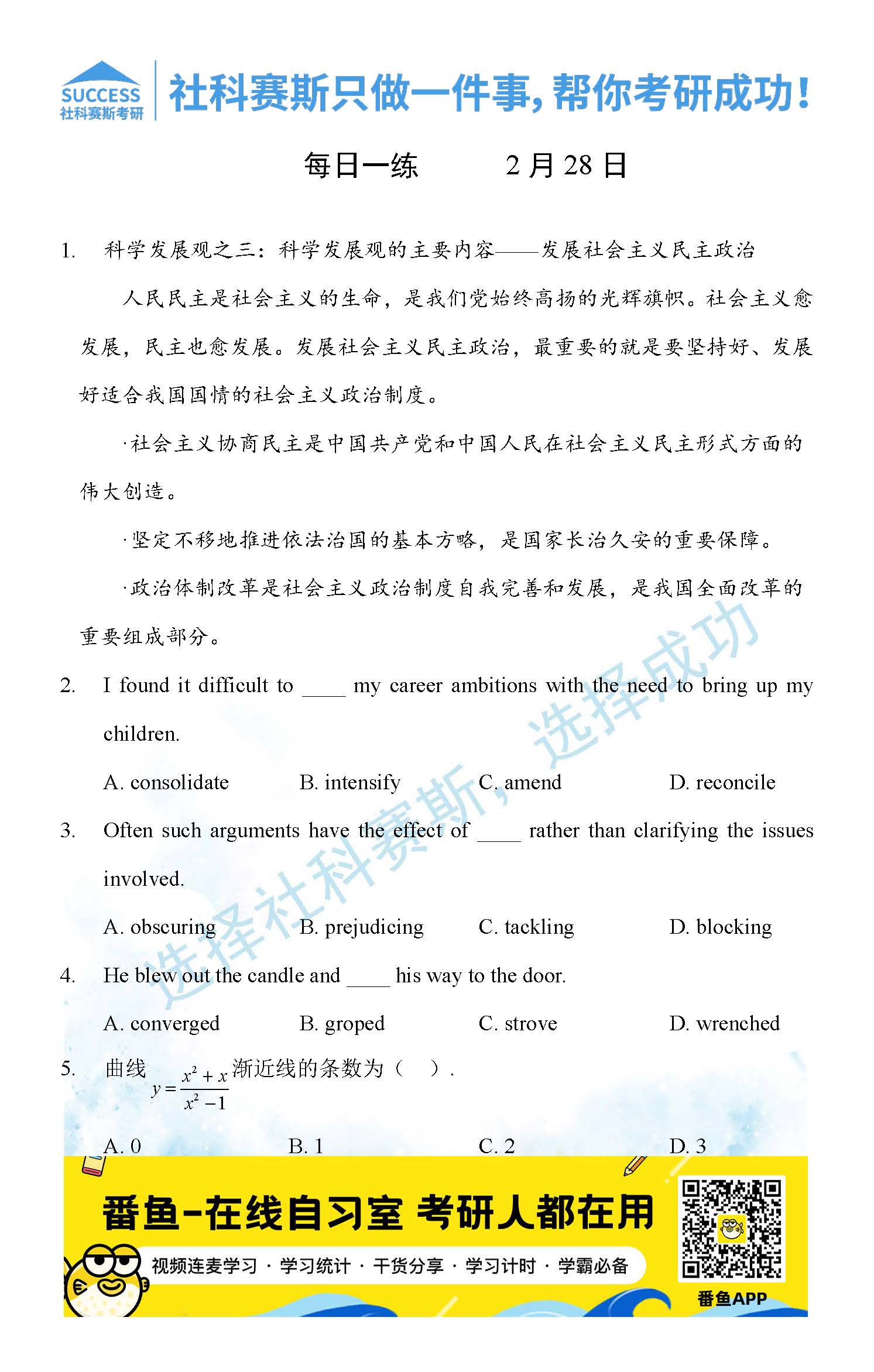 導讀:考研是一場持久戰,保持良好的學習習慣,是能確保復習高效的關鍵。今天社科賽斯MBA備考網小編整理了“2022管理類聯2月28日每日一練及答案”的內容,希望能對廣大考生有所幫助。