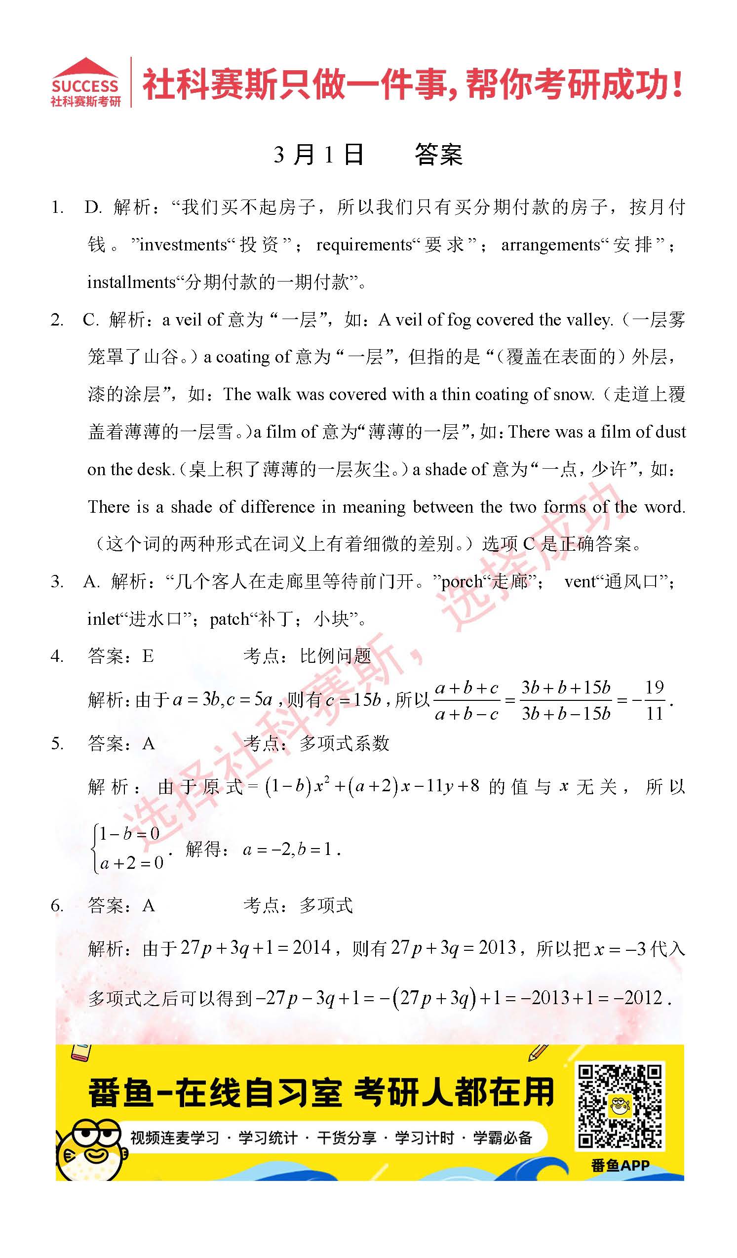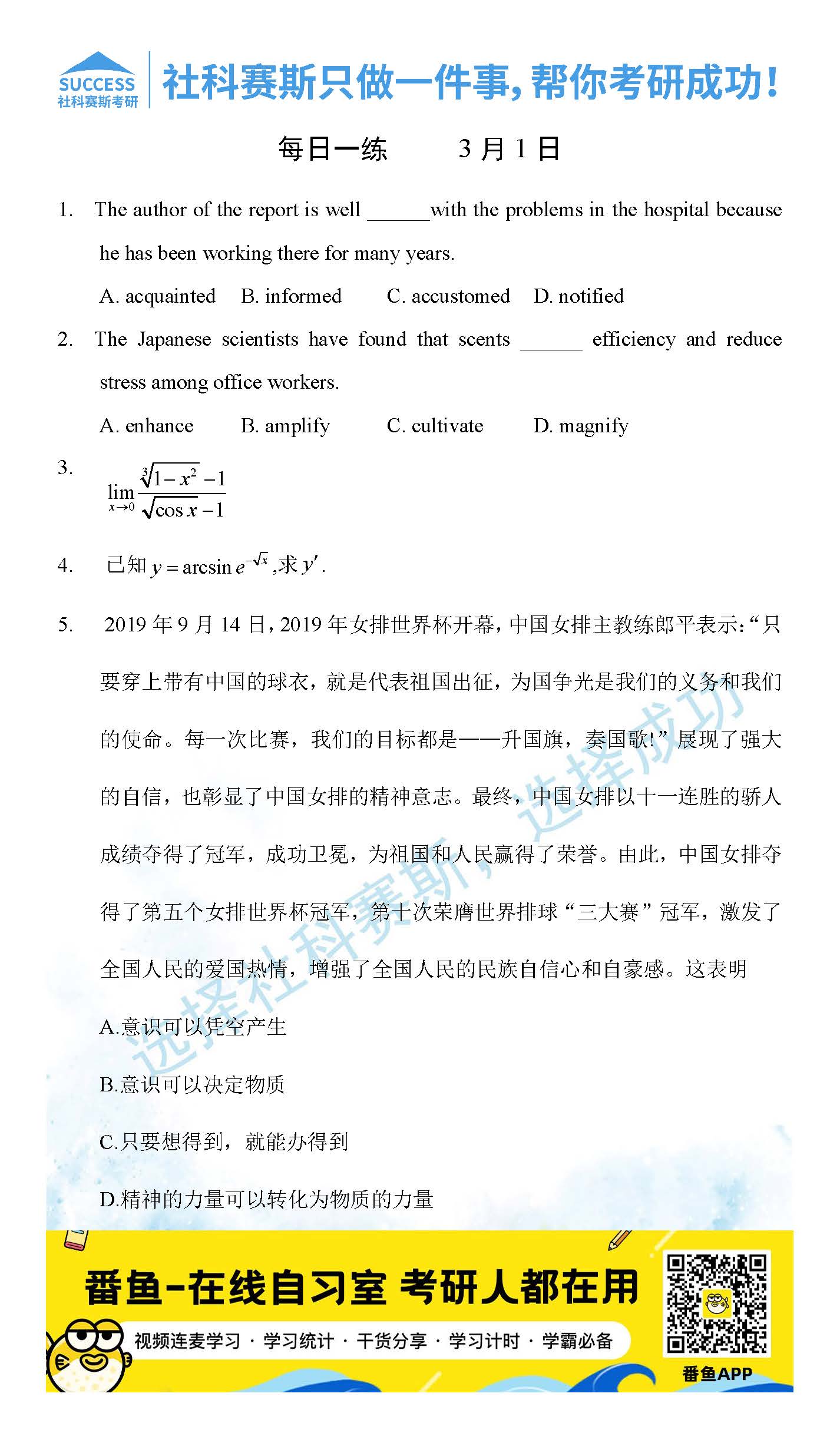 導(dǎo)讀:考研是一場持久戰(zhàn),保持良好的學(xué)習(xí)習(xí)慣,是能確保復(fù)習(xí)高效的關(guān)鍵。今天社科賽斯MBA備考網(wǎng)小編整理了“2022管理類聯(lián)3月1日每日一練及答案”的內(nèi)容,希望能對廣大考生有所幫助。