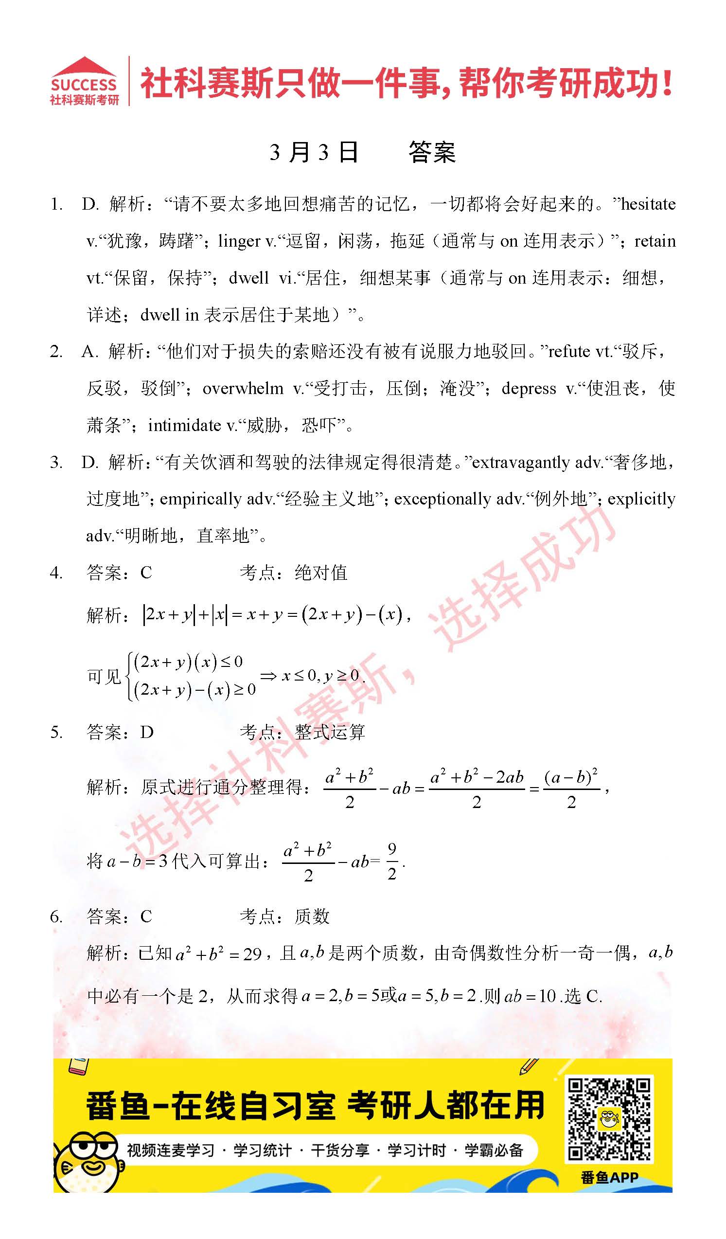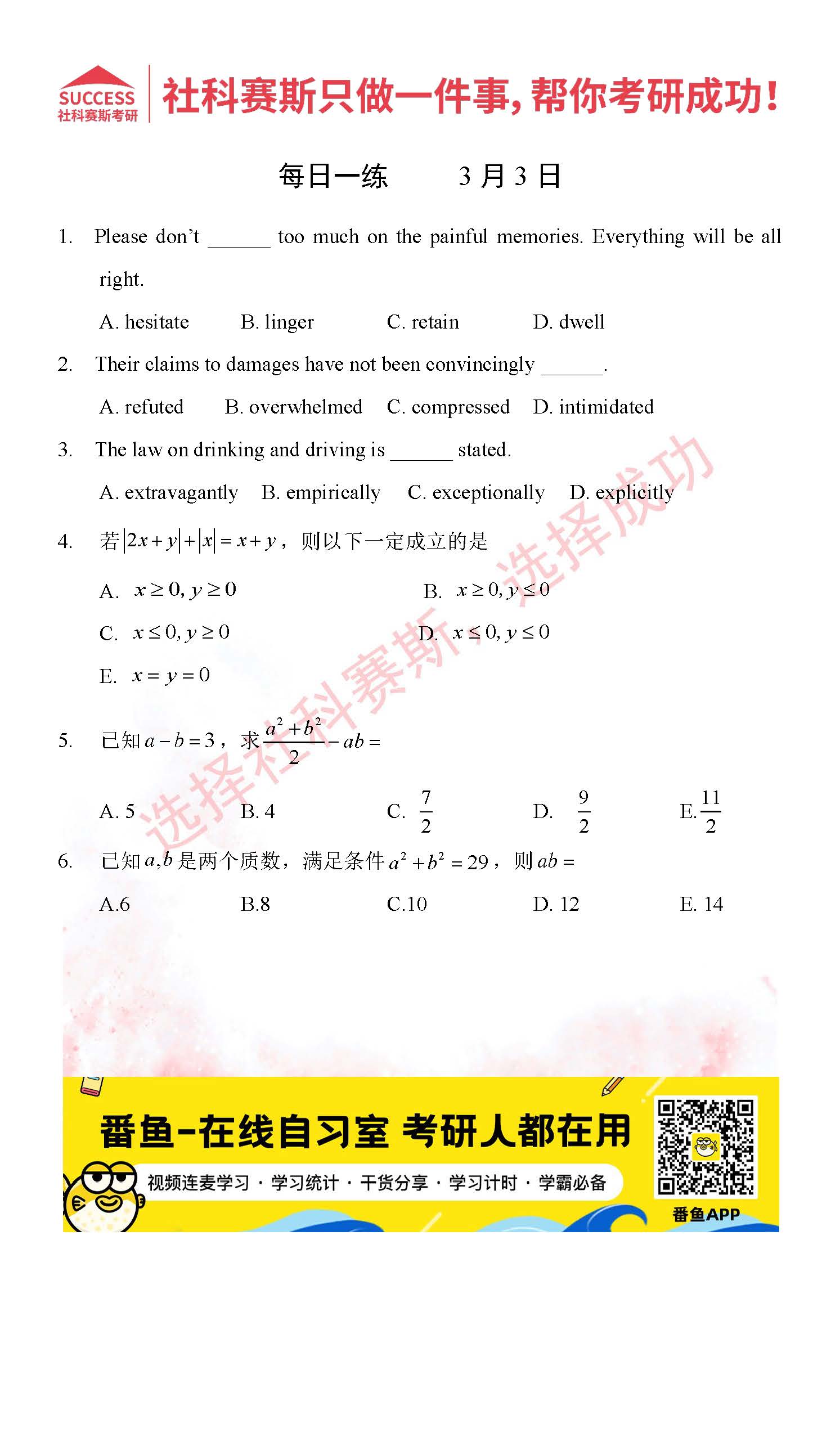 導讀:考研是一場持久戰,保持良好的學習習慣,是能確保復習高效的關鍵。今天社科賽斯MBA備考網小編整理了“2022管理類聯3月3日每日一練及答案”的內容,希望能對廣大考生有所幫助。