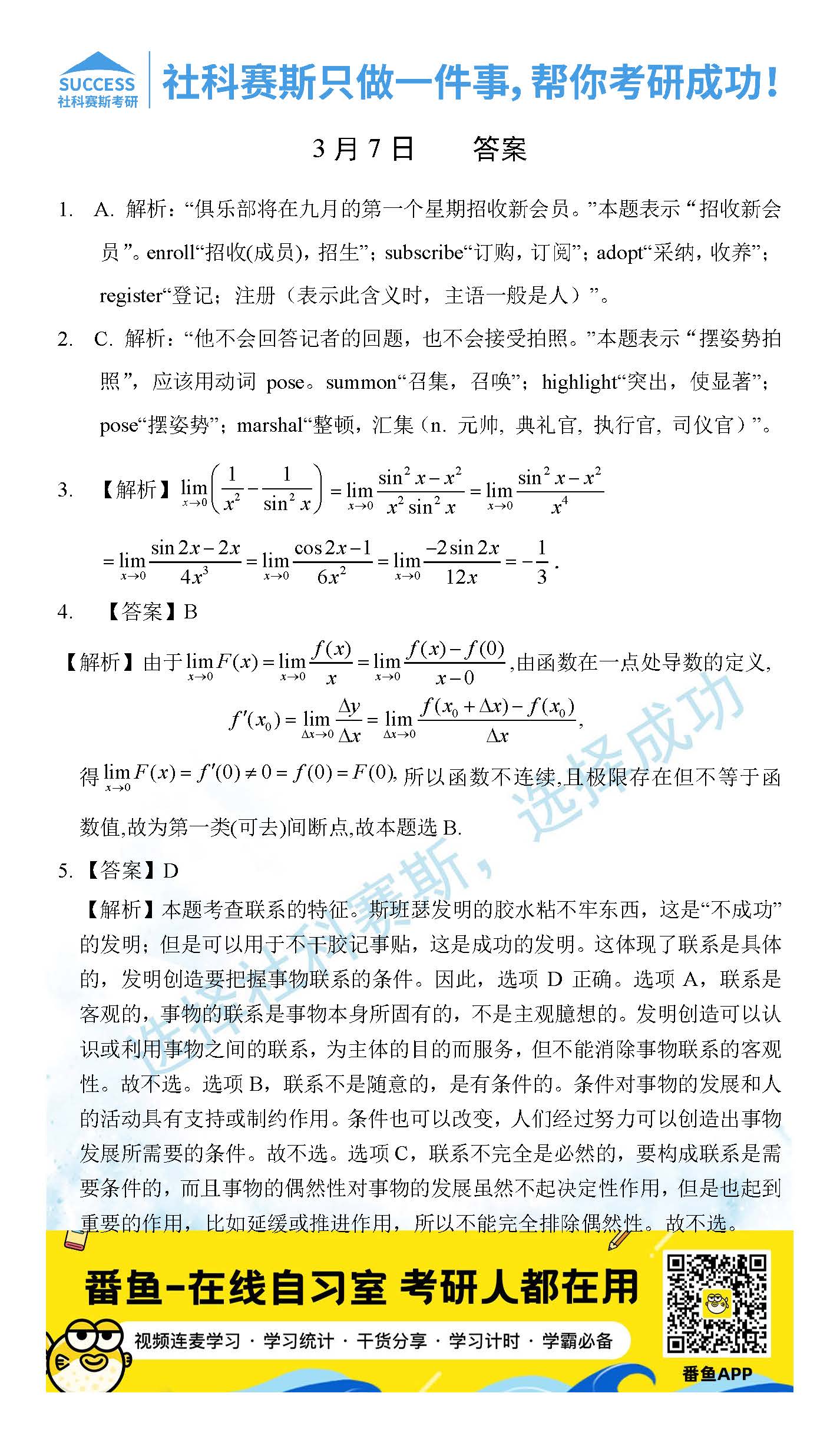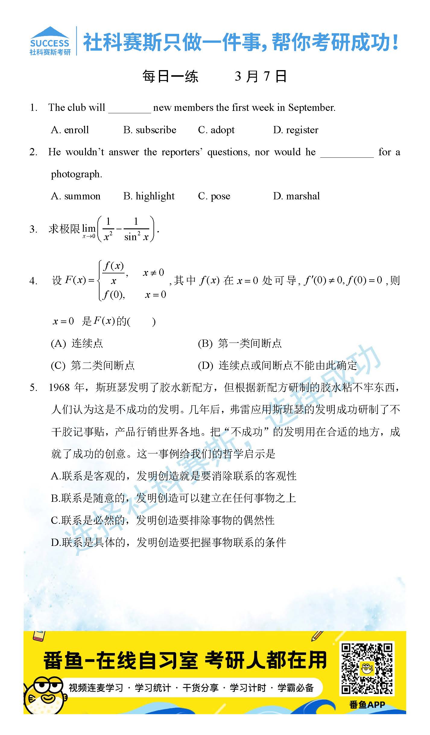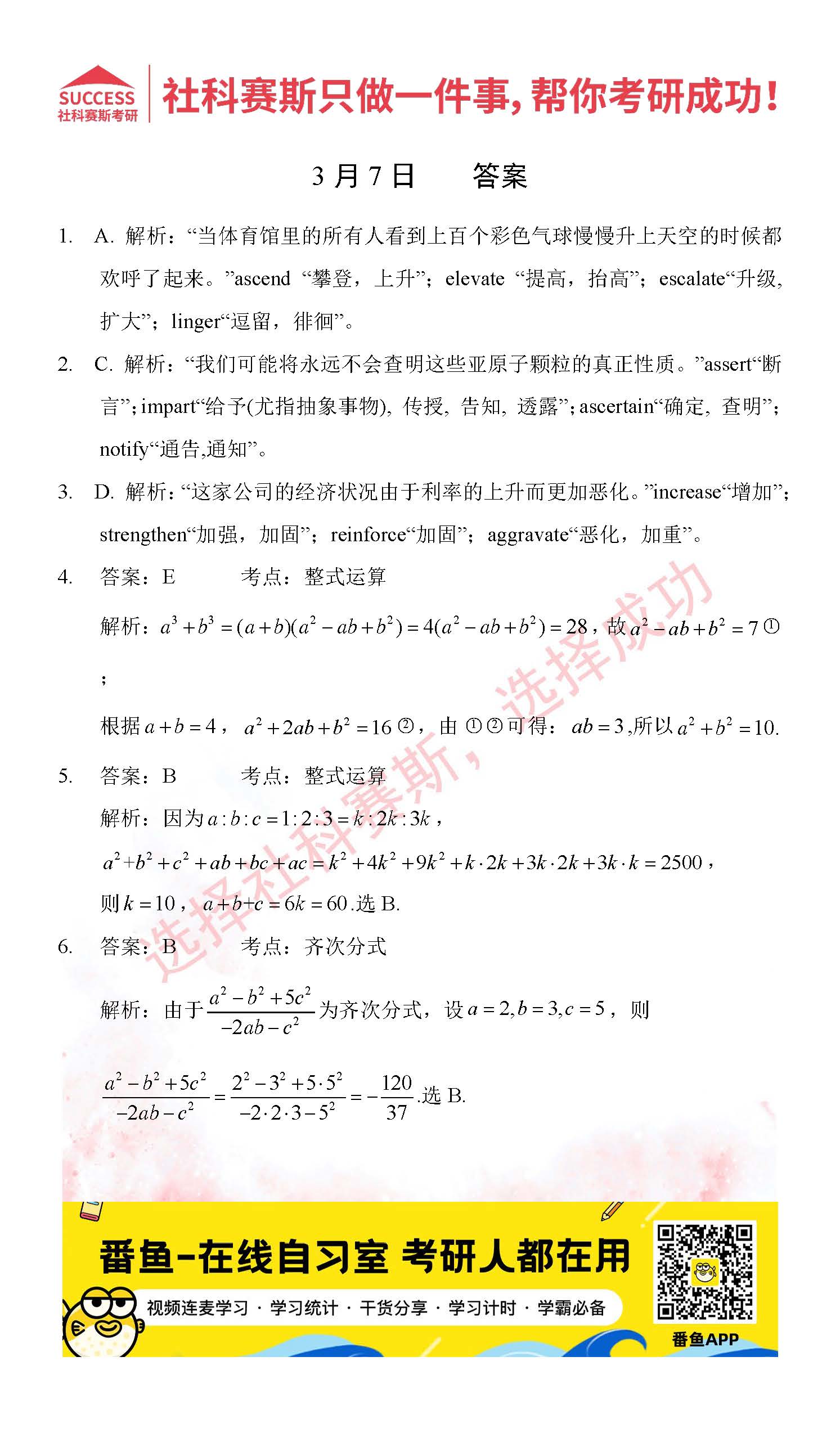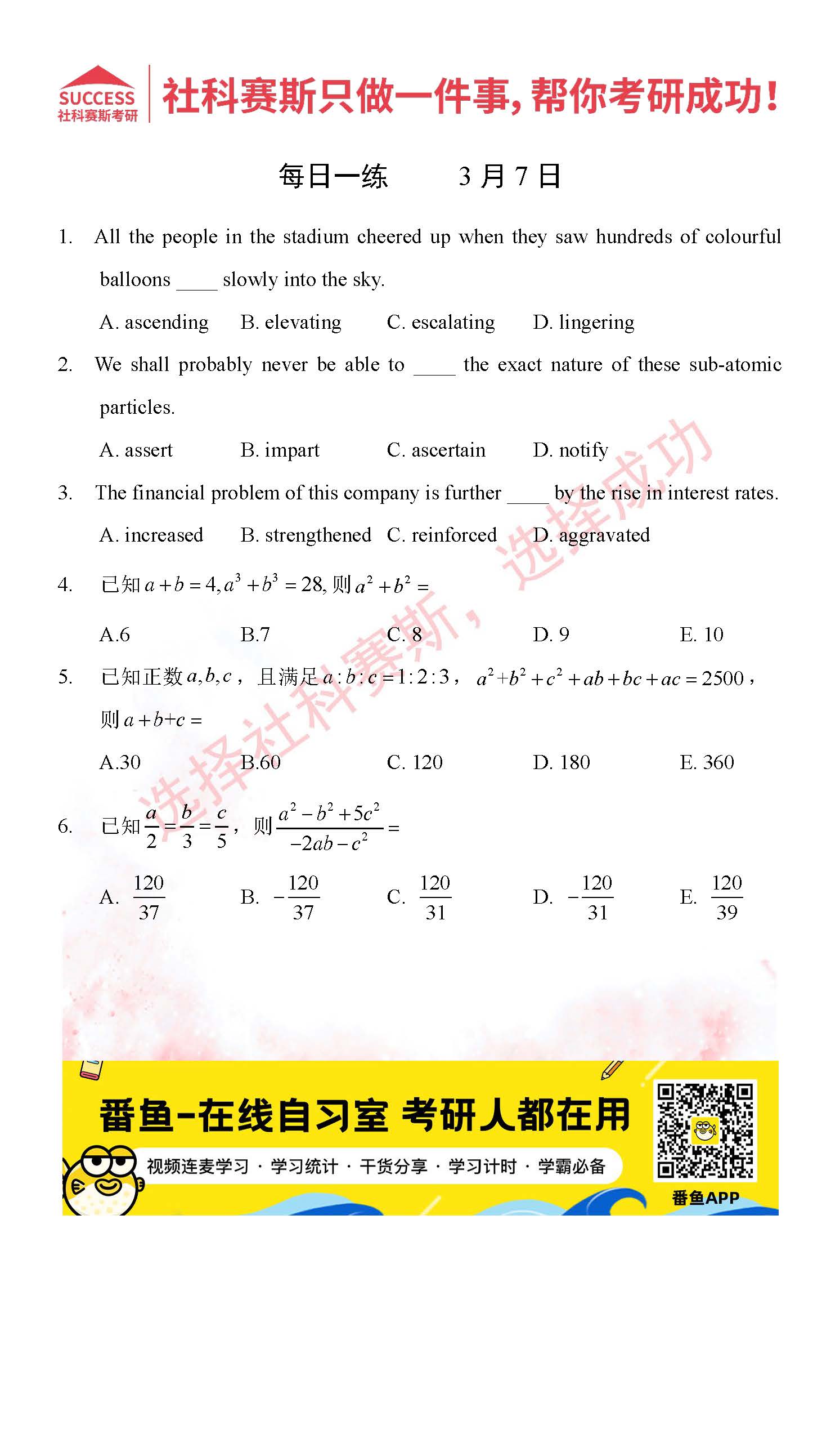導讀:考研是一場持久戰,保持良好的學習習慣,是能確保復習高效的關鍵。今天社科賽斯MBA備考網小編整理了“2022管理類聯3月7日每日一練及答案”的內容,希望能對廣大考生有所幫助。