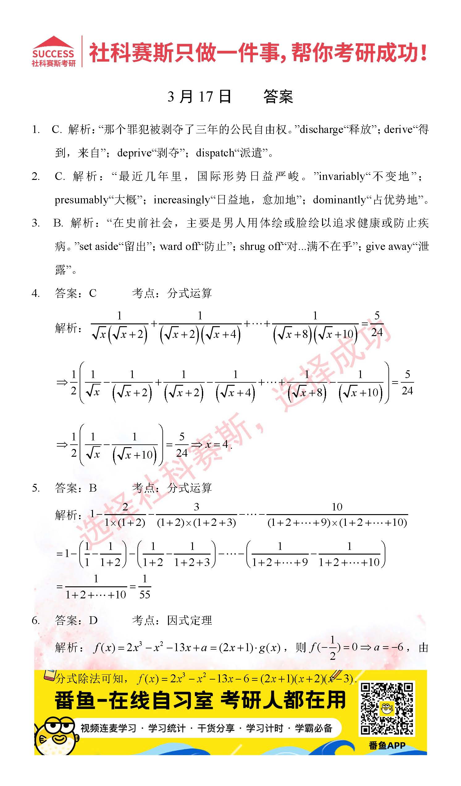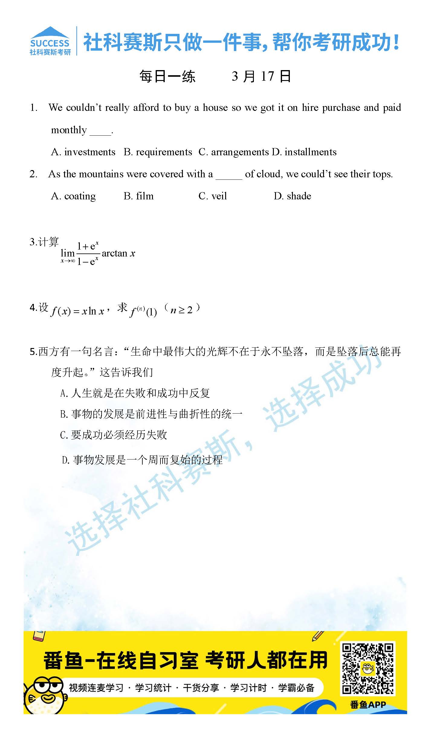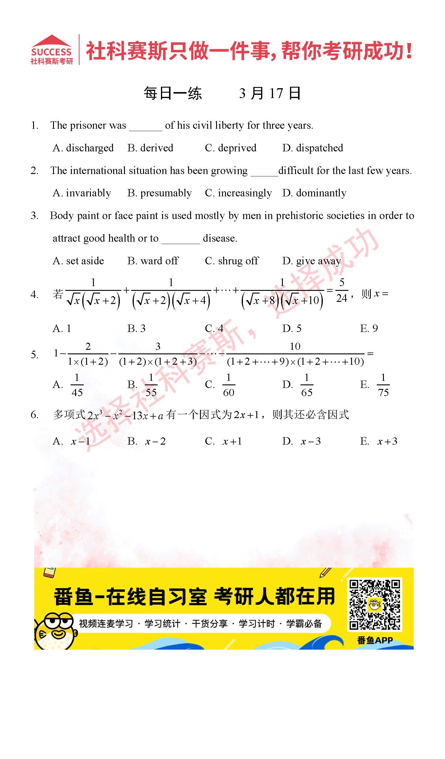 導讀:考研是一場持久戰,保持良好的學習習慣,是能確保復習高效的關鍵。今天社科賽斯MBA備考網小編整理了“2022管理類聯3月17日每日一練及答案”的內容,希望能對廣大考生有所幫助。