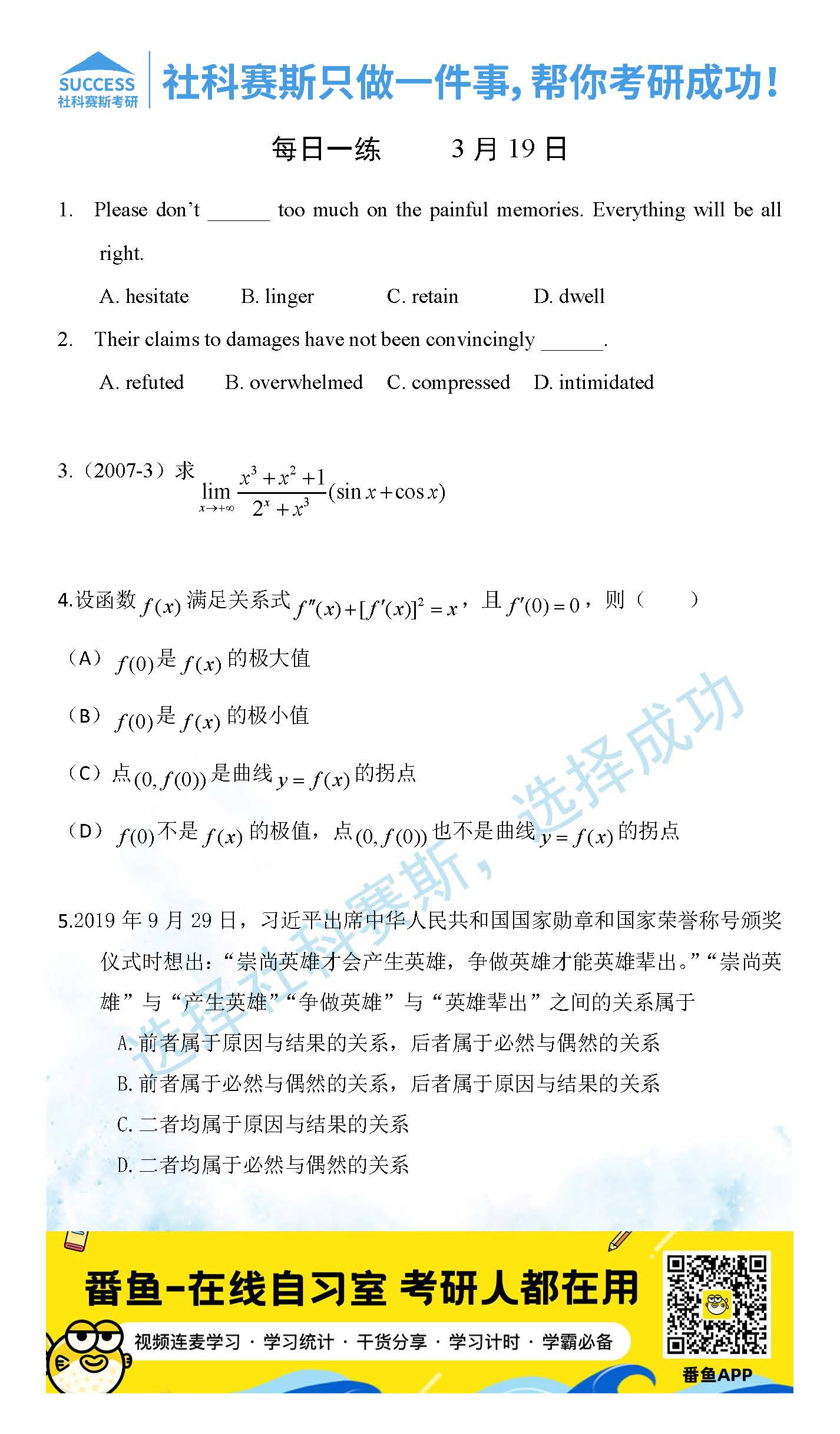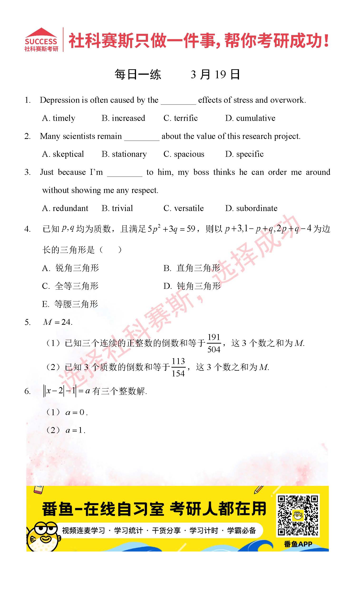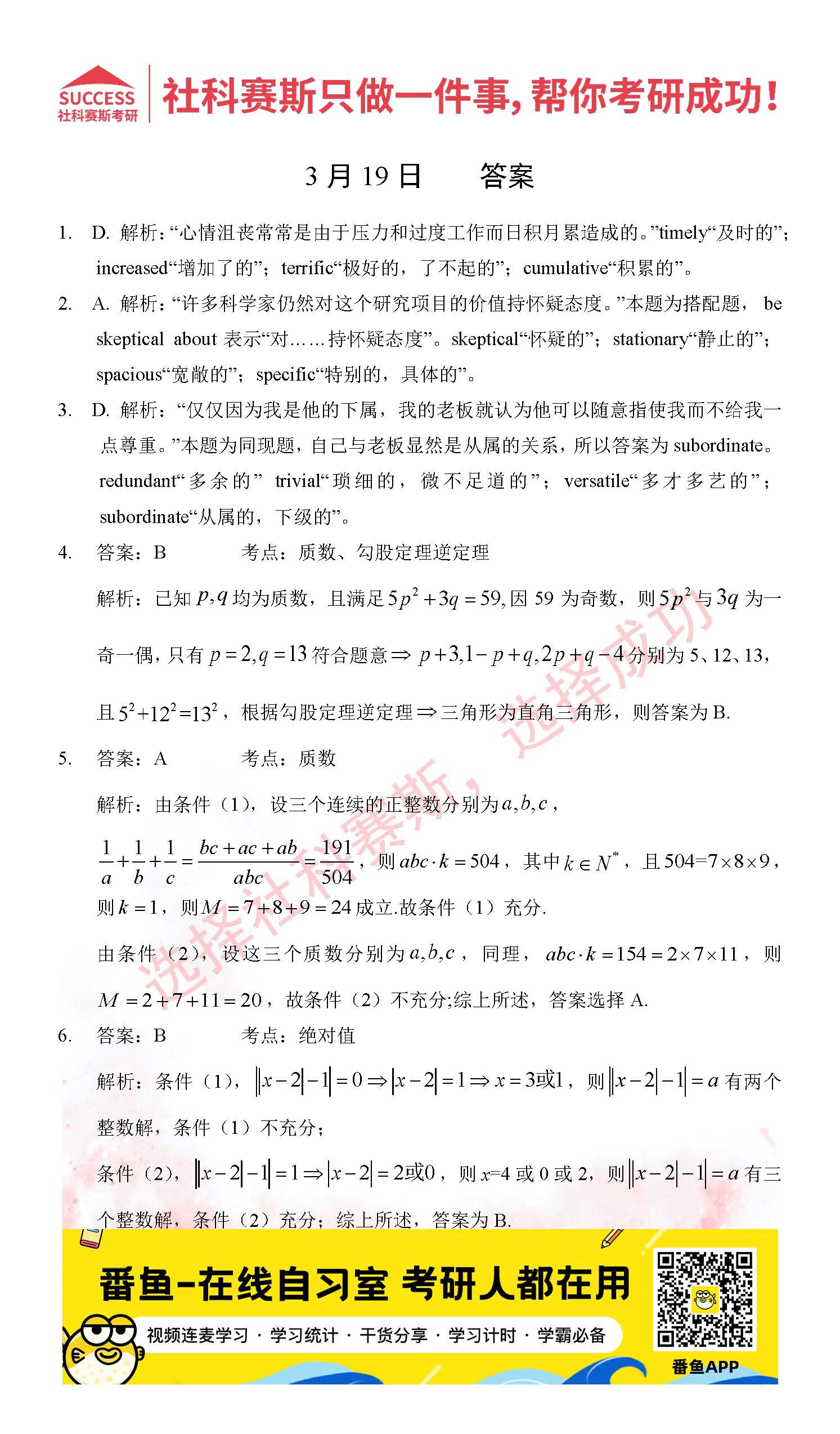 導讀:考研是一場持久戰,保持良好的學習習慣,是能確保復習高效的關鍵。今天社科賽斯MBA備考網小編整理了“2022管理類聯3月19日每日一練及答案”的內容,希望能對廣大考生有所幫助。