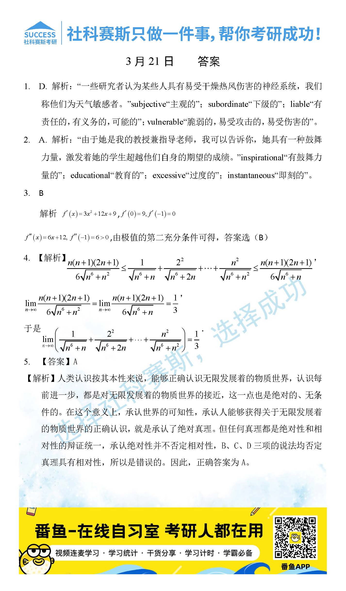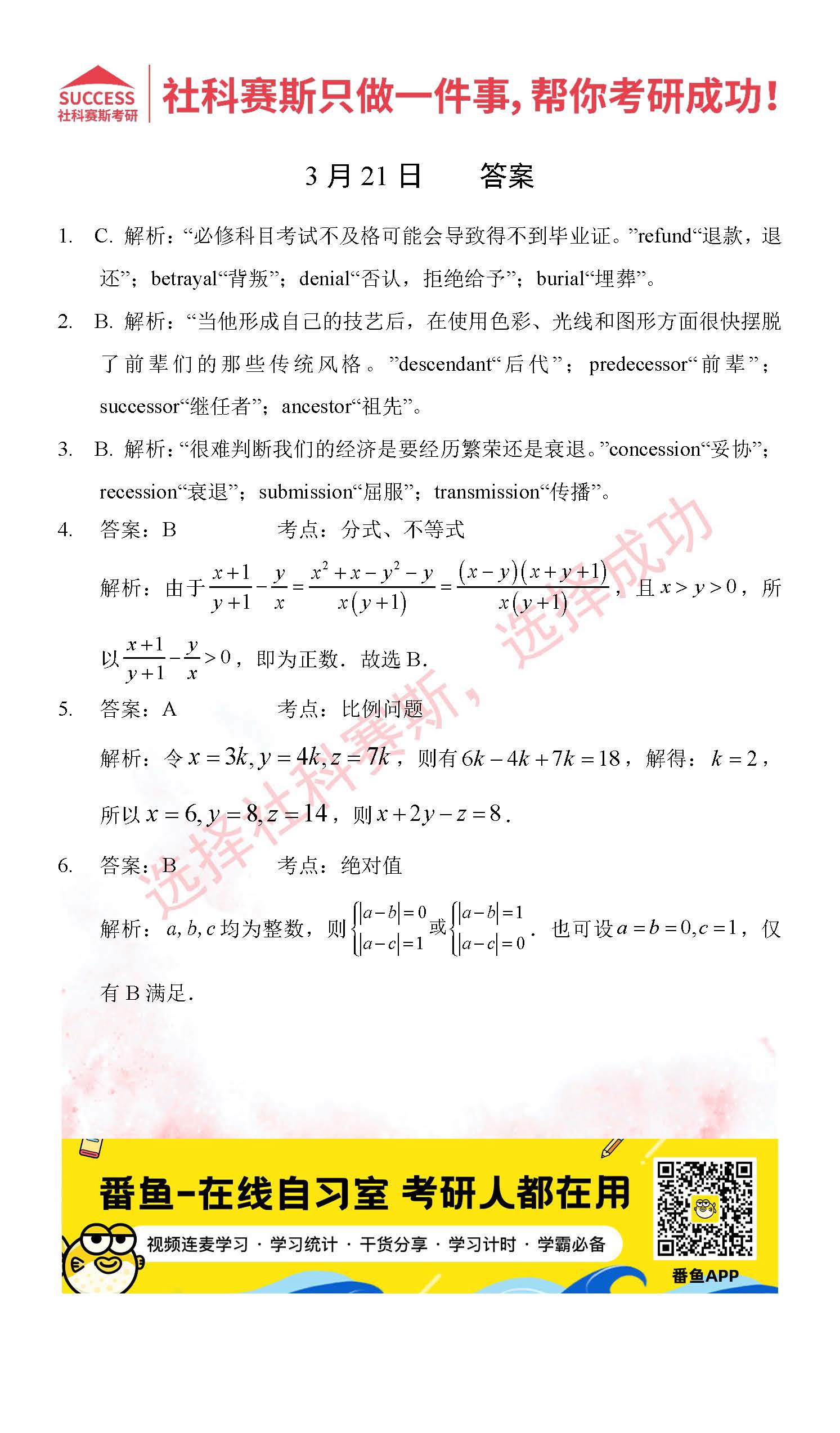 導讀:考研是一場持久戰,保持良好的學習習慣,是能確保復習高效的關鍵。今天社科賽斯MBA備考網小編整理了“2022管理類聯3月21日每日一練及答案”的內容,希望能對廣大考生有所幫助。