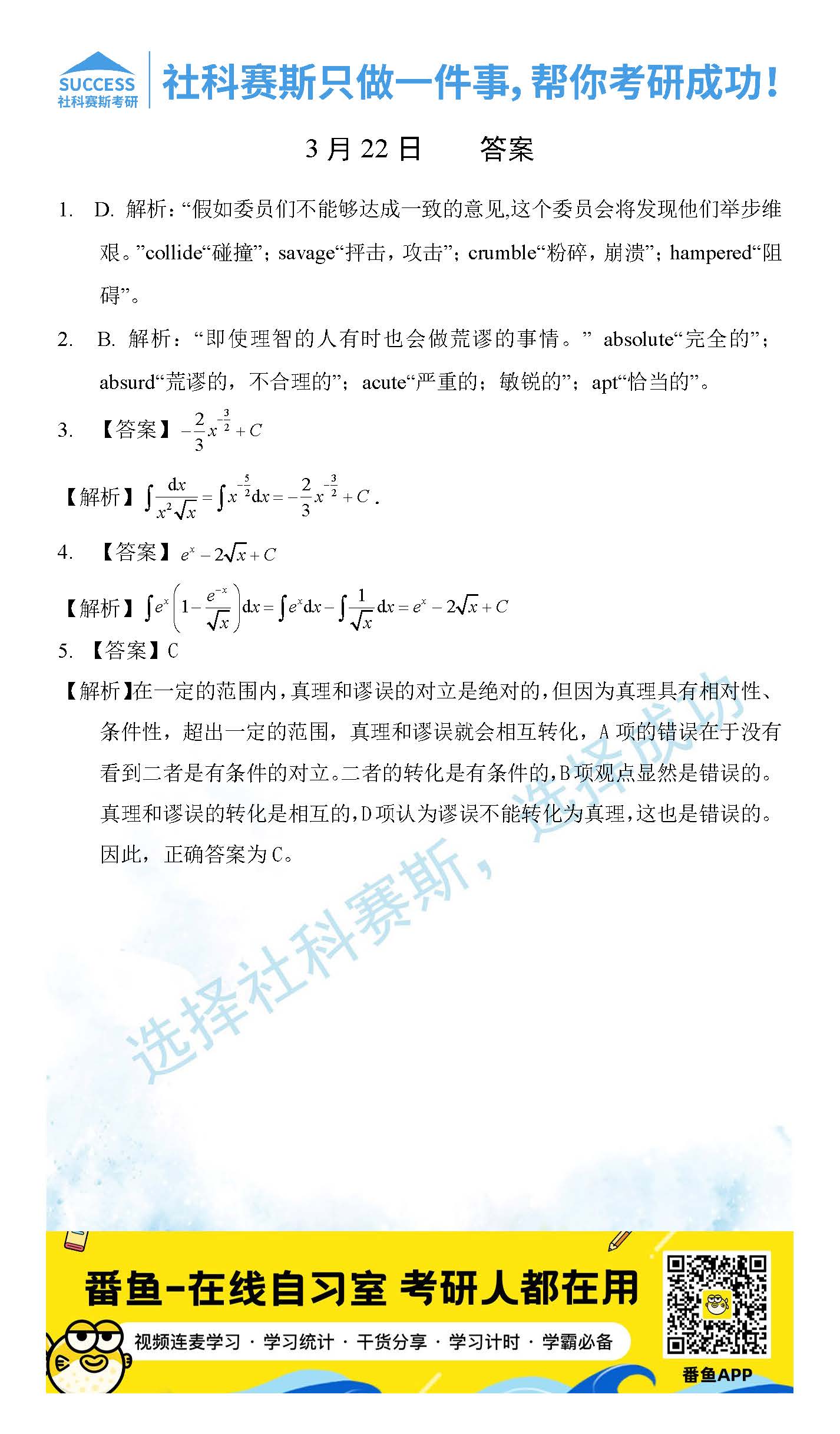 導讀:考研是一場持久戰,保持良好的學習習慣,是能確保復習高效的關鍵。今天社科賽斯MBA備考網小編整理了“2022管理類聯3月22日每日一練及答案”的內容,希望能對廣大考生有所幫助。