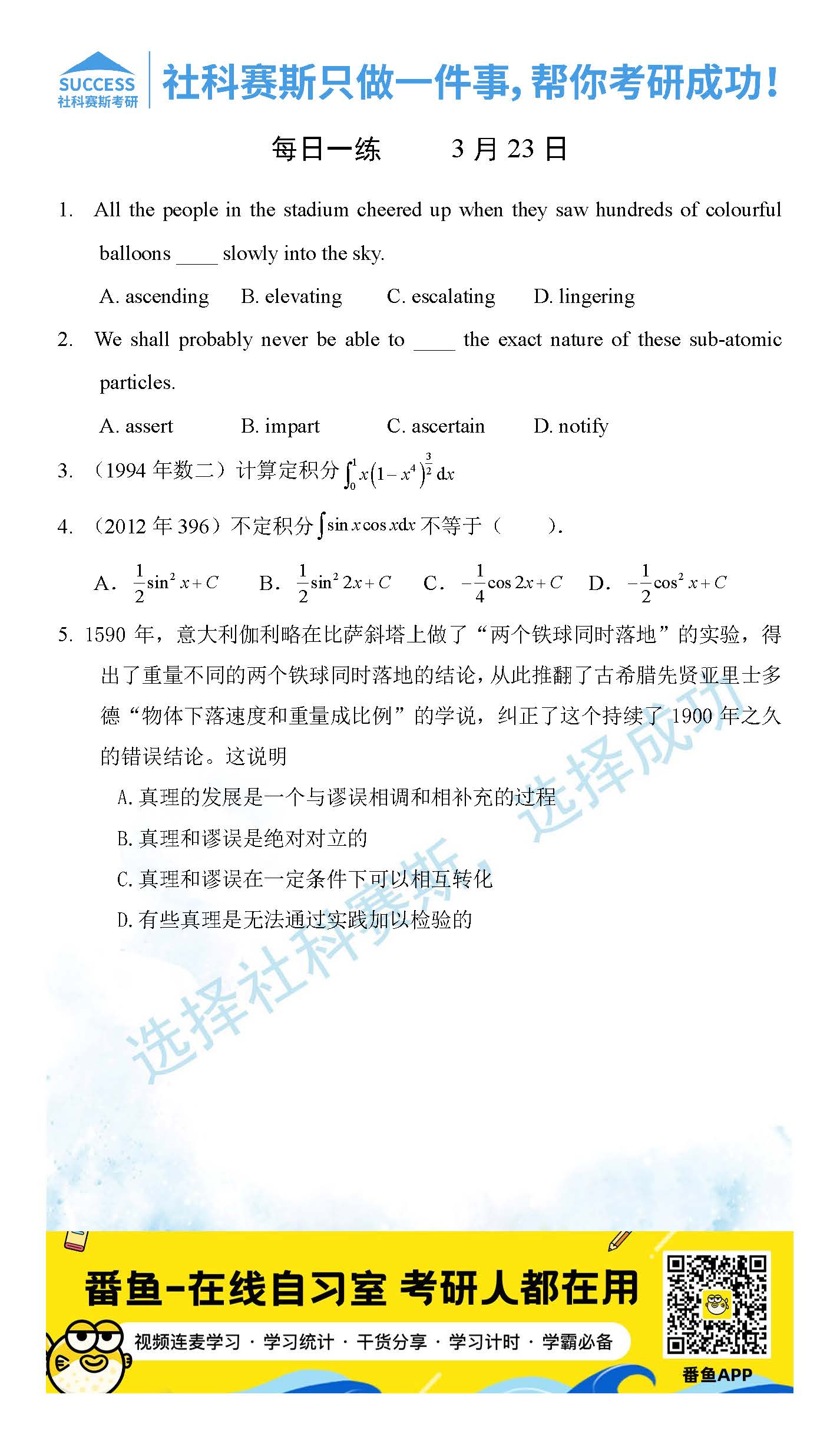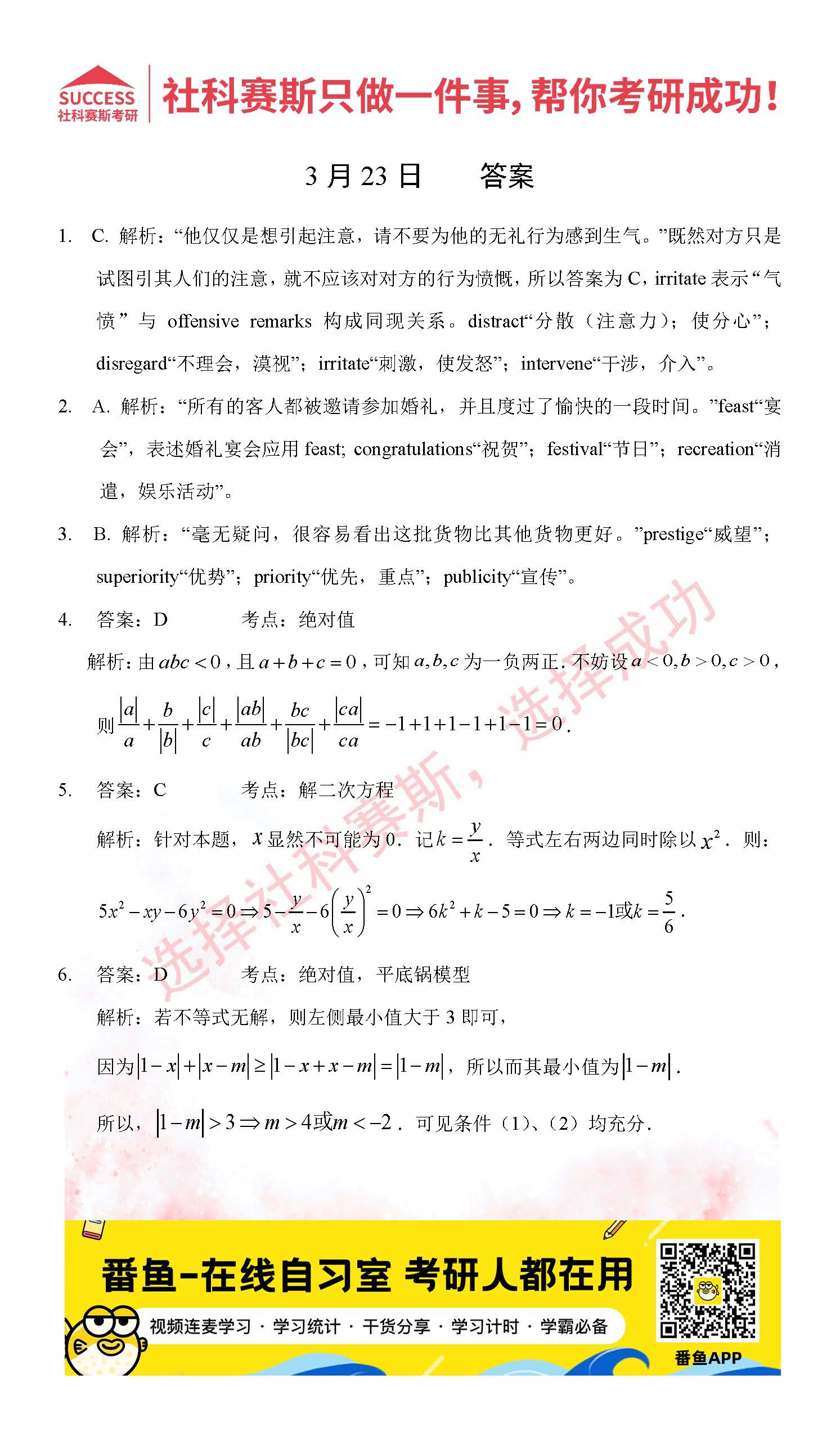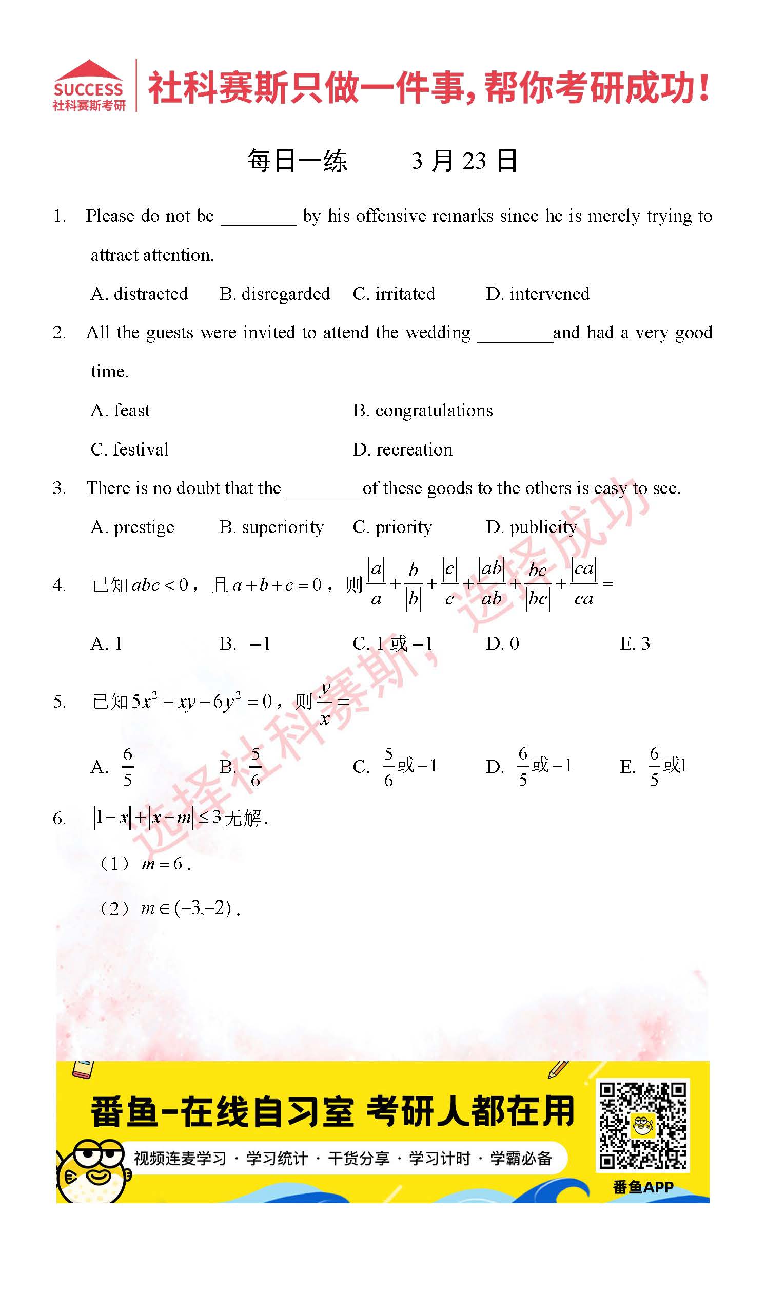導讀:考研是一場持久戰,保持良好的學習習慣,是能確保復習高效的關鍵。今天社科賽斯MBA備考網小編整理了“2022管理類聯3月23日每日一練及答案”的內容,希望能對廣大考生有所幫助。