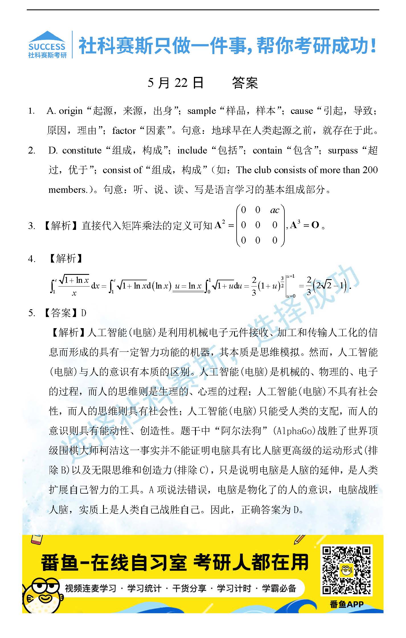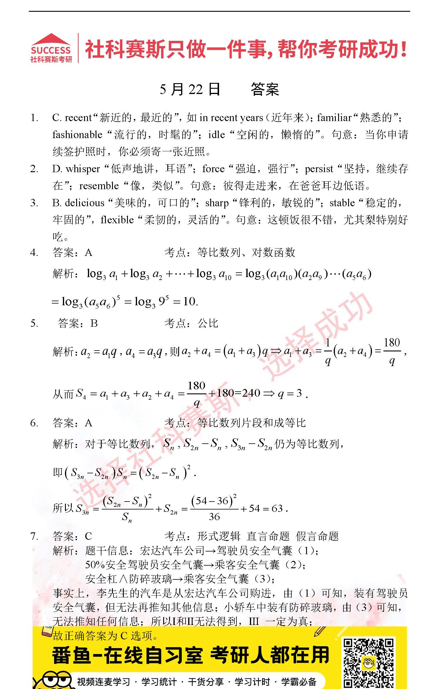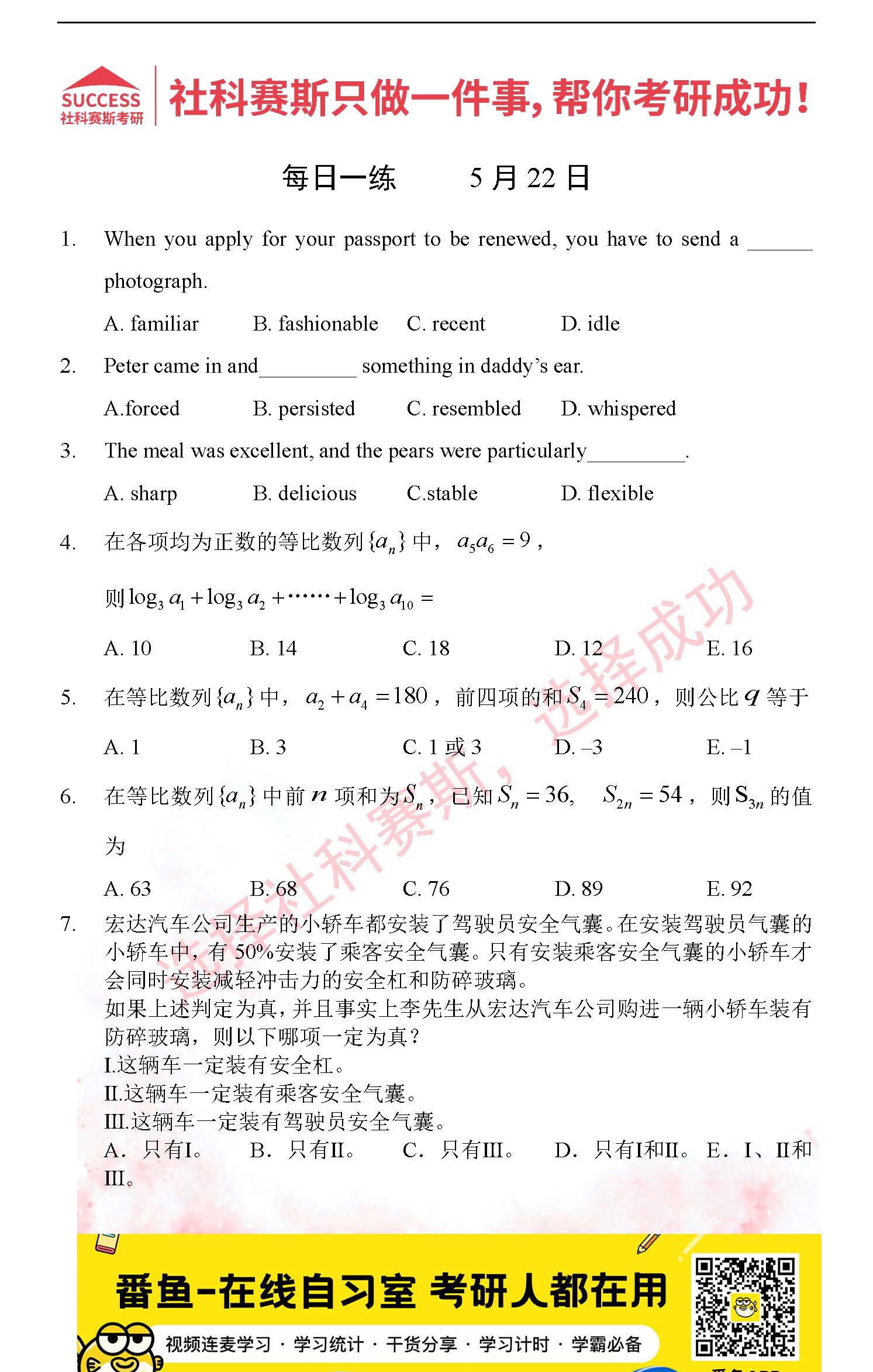 以上就是社科賽斯MBA備考網(wǎng)小編為大家整理“2022管理類聯(lián)考5月22日每日一練及答案”的全部?jī)?nèi)容,希望各位考生堅(jiān)持利用起來,更多每日一練內(nèi)容請(qǐng)持續(xù)關(guān)注MBA備考網(wǎng)管理類聯(lián)考每日一練。