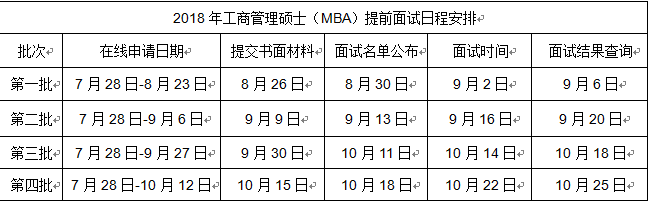 1.考生網上注冊并填報申請材料。申請考生訪問北師大MBA教育中心網站(bs.bnu.edu.cn/mbazx),登錄“報考服務系統”進行網上注冊。在“報考服務系統”中如實填寫《北京師范大學2018年工商管理碩士(MBA)提前面試申請表》。申請材料的具體內容和要求見報考系統內說明,材料填寫不完整的申請不予評審。考生提交申請材料時必須選擇申請提前面試批次,并在所選批次申請材料提交截止日期前確認提交,每年只有一次提前面試機會。各批次的申請截止時間、面試時間見“提前面試日程安排”。