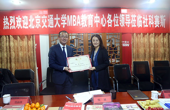 為進一步加強北京交通大學MBA教育與企業的交流與合作,建立一支以學者、企業家為核心的教師隊伍,深化MBA教育改革,提高MBA教育質量和水平。期間,左莉主任代表經管學院向北京社科賽斯(SUCCESS)教育集團創始人、董事長甄誠先生頒發兼職教授聘書,聘期三年。甄誠董事長在會上談到:“被聘任為北京交通大學經濟管理學院兼職教授既是一份信任更是一份責任與擔當,再接下來的工作當中,必將結合自己的經驗和資源,定期與MBA學員們進行職業發展等方面的交流。MBA學員們在學習、創業過程中遇到的困難,也將盡己所能,給予他們相關指導”。左莉主任表示:希望在專家的指導下,把北京交通大學MBA教育質量提升到一個更高的層次,取得更好的成績,特別在MBA職業規劃及職業生涯設計、MBA面試指導、創新創業等方面給予支持。