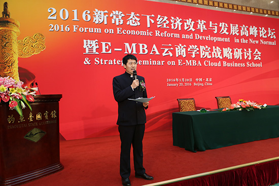導(dǎo)讀: 2016年1月20日,由E-MBA云商學(xué)院主辦的2016新常態(tài)下經(jīng)濟改革與發(fā)展高峰論壇暨E-MBA云商學(xué)院戰(zhàn)略研討會在北京釣魚臺國賓館隆重召開。200