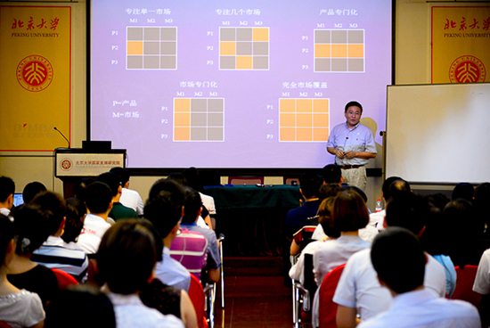 盛夏高溫,擋不住一顆顆炙熱的求學之心。2016年7月9日晚,由北京大學國家發展研究院BiMBA商學院與社科賽斯教育集團聯合舉辦的北大MBA校園體驗課在北大朗潤園萬眾樓順利召開。本次MBA公開課主題為 “互聯網大數據時代營銷四大挑戰”。 北京大學國家發展研究院BiMBA商學院院長張黎教授,北京社科賽斯教育集團校長李發進先生,BiMBA商學院副院長王欣老師、MBA中心營銷經理馬宏莉、招生經理于斌老師等嘉賓領導出席。體驗課吸引了眾多對國發院MBA項目有強烈報考愿望的職場精英們和BiMBA2016級新生參加。