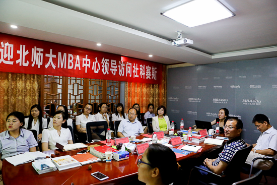 會上,社科賽斯集團董事長甄誠先生致歡迎辭,甄誠董事長表示非常歡迎北京師范大學MBA中心各位領導來到社科賽斯,也希望社科賽斯常與北京師范大學保持長期的交流,為MBA事業的發展共同作出努力。校長李發進先生詳解介紹了公司近幾年的發展狀況,李校長介紹始創于2002年,在十四年的飛速發展過程中,始終秉承誠信、專注、共贏的辦學理念,目前已經成長為目前國內較好、學員數量多、升學率高的MBA考前教學機構。北京師范大學經管學院副院長崔學剛教授對北師大MBA項目的發展歷史、項目特色做了詳細的介紹,并著重介紹了MBA國際化的發展情況。然后,MBA教育中心主任助理兼市場總監杜靜老師對北師大MBA項目做了介紹。