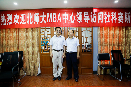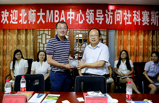 7月正值各大院校MBA的招生升溫的階段,北京師范大學MBA招生工作也在有條不紊進行當中。2016年7月12日14:30,北京師范大學經濟與工商管理學院副院長崔學剛教授一行訪問了北京社科賽斯集團(SUCCESS)。社科賽斯集團董事長甄誠先生、校長李發進先生、總監張晶波先生等熱情接待了到訪嘉賓。