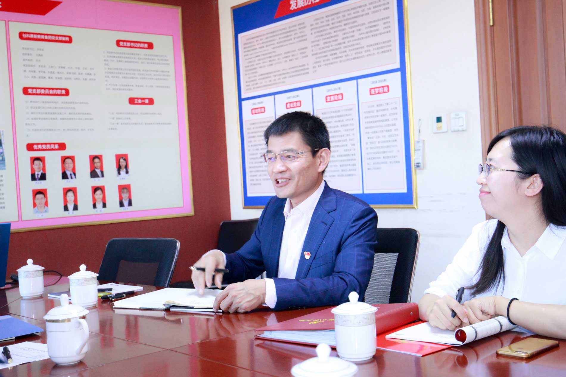 北京社科賽斯董事總經(jīng)理、校長兼黨支部書記李發(fā)進(jìn)先生全程陪同并就黨建工作做了重點(diǎn)匯報(bào)。