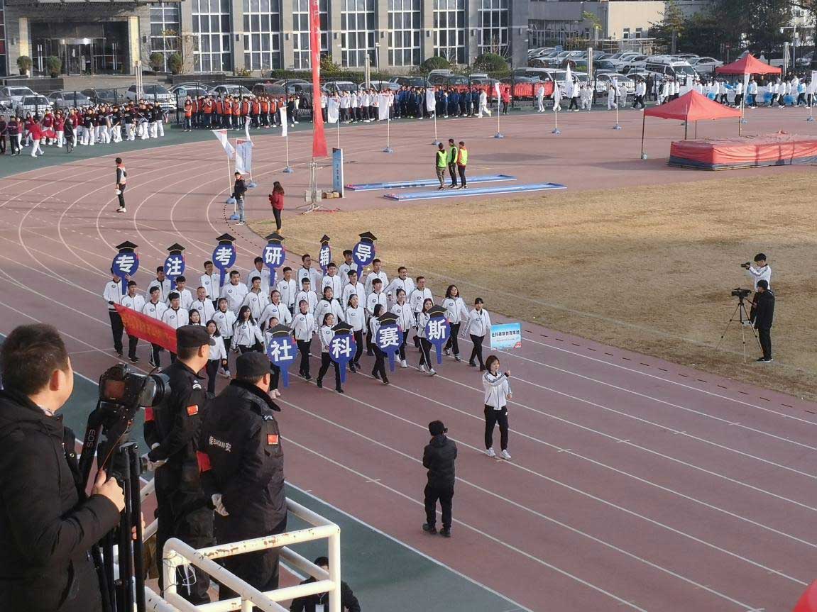 立冬過后的北京寒意漸濃,但是絲毫沒有影響各位運動員的參賽熱情。早上7點,北京社科賽斯的運動員們就已經身著整齊的服裝、手拿精致的標語,齊聚在海淀區體育場門口開始準備入場儀式。今天,他們將在海淀體育場留下自己最美的身影,“社科賽斯,立足考研,超越自我,永不言棄。”鼓樂齊鳴,伴著洪亮有力的口號和鮮艷明麗的條幅,北京社科賽斯代表隊步伐整齊一致緩緩入場。