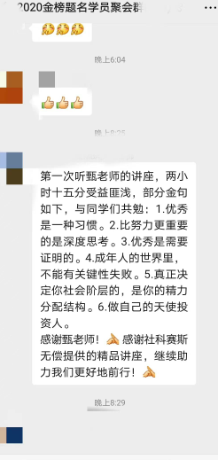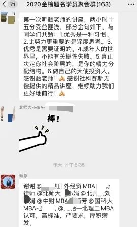兩個多小時的直播分享,獲得學員的一致好評。至此,《MBA——職場制勝之道》專題報告圓滿結束。