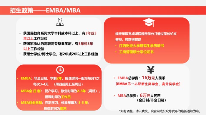 -江西財經MBA/EMBA招生政策-