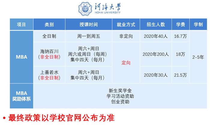 -河海MBA招生政策-