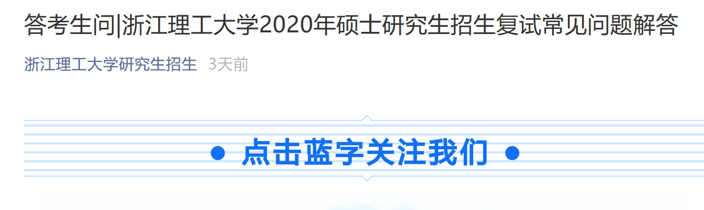 答:按照教育部要求,我校復(fù)試啟動(dòng)時(shí)間原則上不早于4月30日,具體時(shí)間請(qǐng)關(guān)注學(xué)校研招網(wǎng)、微信公眾號(hào)“浙江理工大學(xué)研究生招生”以及各學(xué)院網(wǎng)站。
