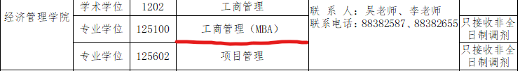 6. 第一志愿報考工商管理、公共管理、旅游管理、工程管理、會計、圖書情報、審計專業學位碩士的考生,在滿足調入專業報考條件的基礎上,可申請相互調劑,但不得調入其他專業;其他專業考生也不得調入以上專業。