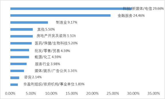 從入學前的行業(yè)分類來看,科技、新媒體、電信等新興行業(yè)和金融行業(yè)占比較高,制造業(yè)、房地產(chǎn)、醫(yī)藥等緊隨其后,商學院招收學生的行業(yè)背景、職能背景并不單一,而是注重其多元化的背景,因此,申請人對于行業(yè)、職能不要過于緊張!