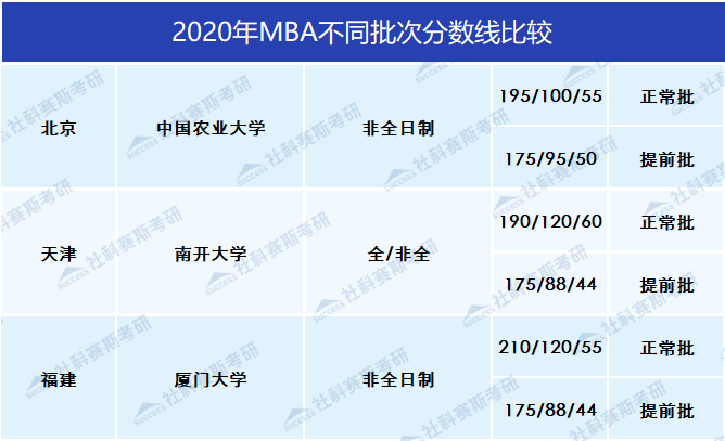 不難發現,提前批和正常批兩條分數線之間確實存在不小的差距。正常批MBA分數線通常高于國家線,而提前面試通過的考生一般參照國家線即可。