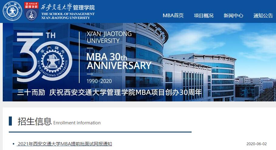 2021年西安交通大學工商管理碩士(MBA)入學考試繼續采用考前預審及面試(以下稱為提前批面試)方式,考生可通過提前批次和正常批次兩種方式錄取。