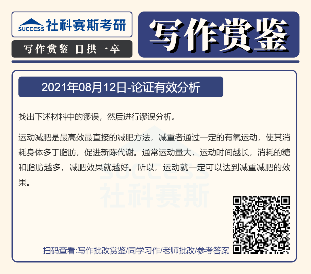 以上就是“2022MBA寫作:2022MBA聯(lián)考寫作批改賞鑒及參考答案(8月12日)”的全部?jī)?nèi)容,更多寫作精選習(xí)題,請(qǐng)持續(xù)關(guān)注社科賽斯MBA備考網(wǎng)!
