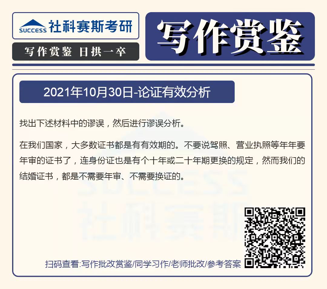 以上就是“2022MBA寫作:2022MBA聯(lián)考寫作批改賞鑒及參考答案(10月30日)”的全部內(nèi)容,更多寫作精選習(xí)題,請持續(xù)關(guān)注社科賽斯MBA備考網(wǎng)!