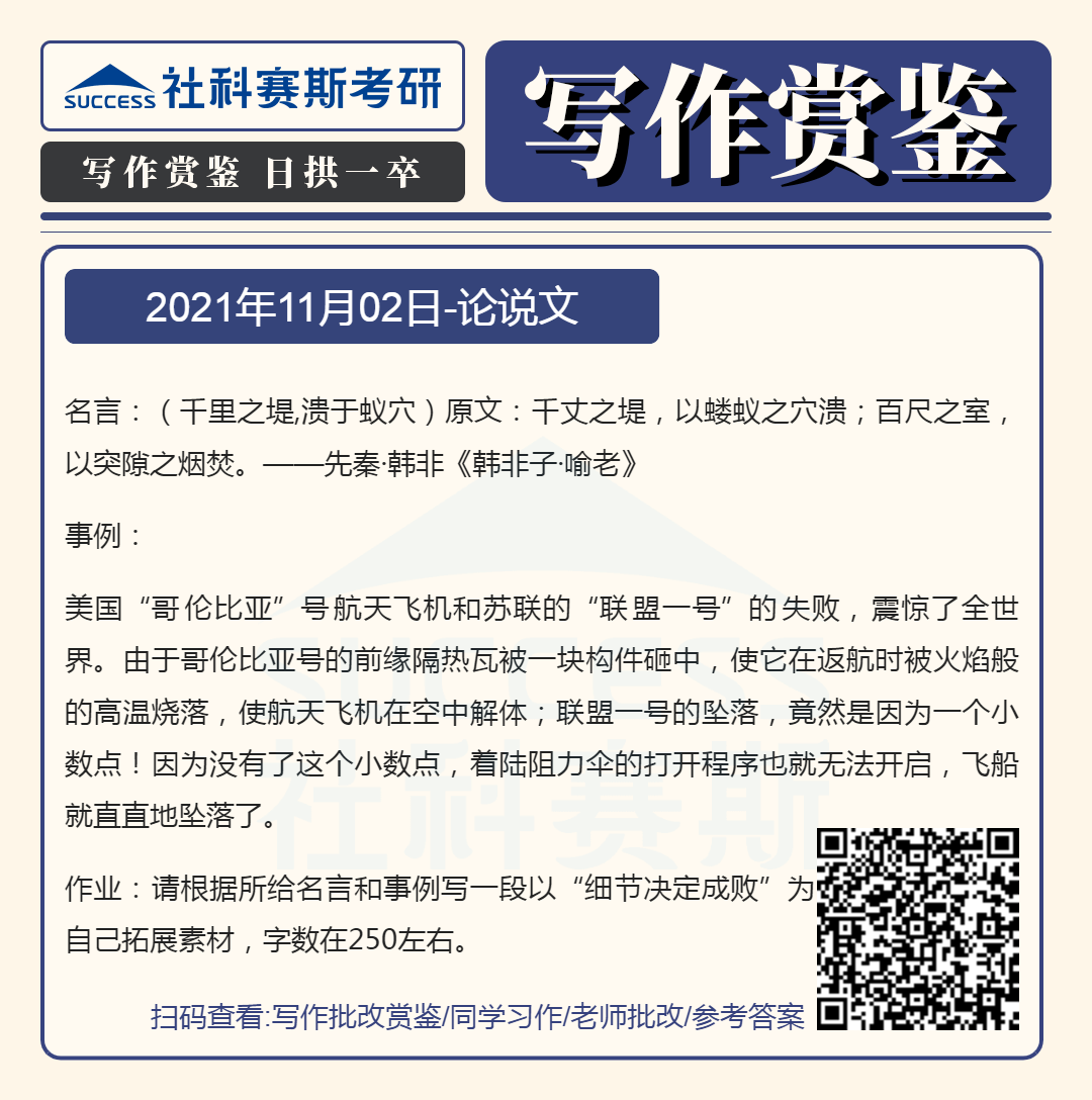 以上就是“2022MBA寫作:2022MBA聯(lián)考寫作批改賞鑒及參考答案(11月2日)”的全部內(nèi)容,更多寫作精選習題,請持續(xù)關(guān)注社科賽斯MBA備考網(wǎng)!
