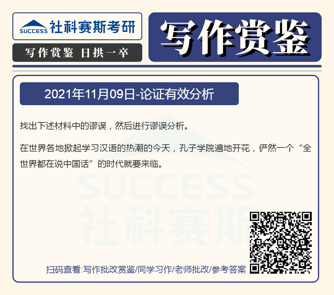 以上就是“2022MBA寫作:2022MBA聯(lián)考寫作批改賞鑒及參考答案(11月9日)”的全部內(nèi)容,更多寫作精選習(xí)題,請(qǐng)持續(xù)關(guān)注社科賽斯MBA備考網(wǎng)!