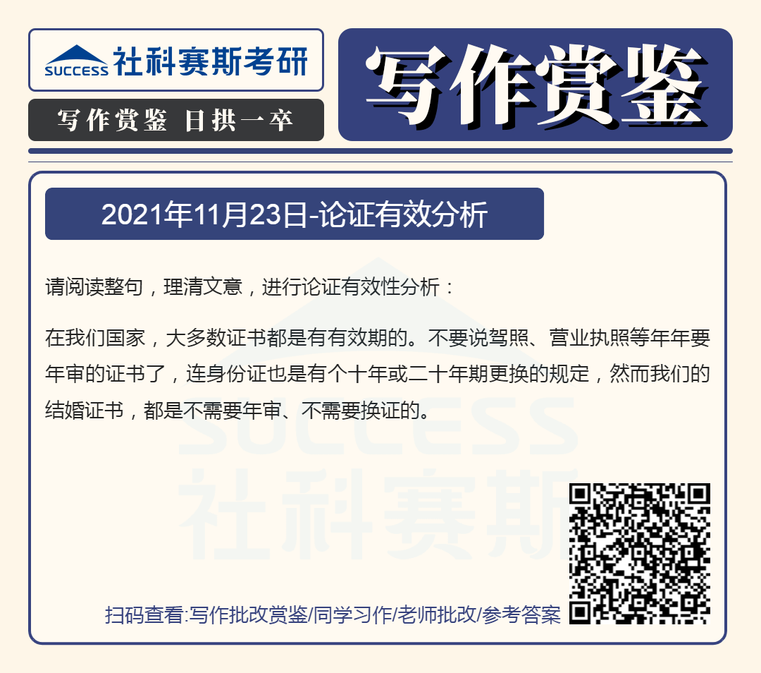 以上就是“2022MBA寫作:2022MBA聯(lián)考寫作批改賞鑒及參考答案(11月23日)”的全部內(nèi)容,更多寫作精選習(xí)題,請(qǐng)持續(xù)關(guān)注社科賽斯MBA備考網(wǎng)!