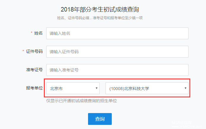 以下是北京科技大學,2018年全國碩士研究生考試成績查詢入口(https://yz.chsi.com.cn/apply/cjcx/)
