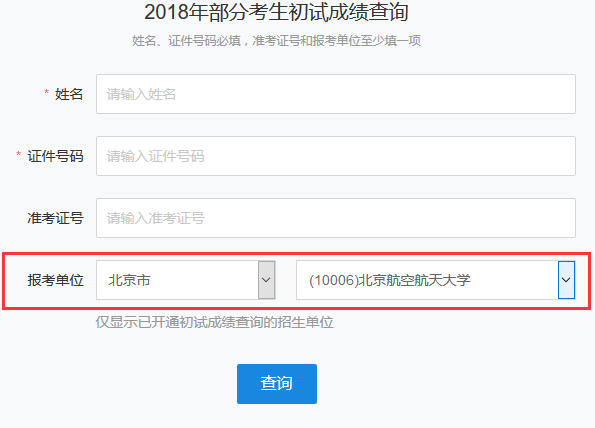 以下是北京航空航天大學,2018年全國碩士研究生考試成績查詢入口(https://yz.chsi.com.cn/apply/cjcx/)
