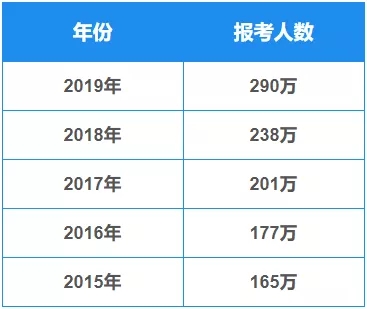 2018年12月23日,又一年的考研大戰(zhàn)開始,這一年的考研人數(shù),再一次變成了“歷史新高”。從教育部公布的數(shù)據(jù)來看,2019年全國考研報(bào)名人數(shù)達(dá)到了史無前例的290萬人,比2018年考研人數(shù)增加了52萬人,增幅達(dá)到了21.8%,考研增加人數(shù)和增長率均為近年來最高。從上圖中可以看出,近5年,考研人數(shù)逐年增長,同2015年的165萬人相比增加了125萬人,研究生報(bào)考人數(shù)的快速上漲也引發(fā)了社會的廣泛關(guān)注。