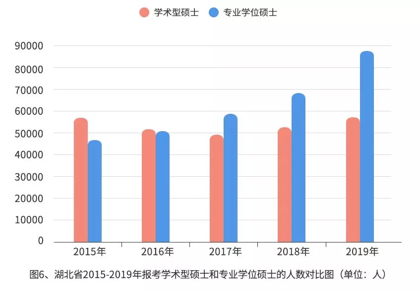三、專業(yè)學(xué)位碩士的報(bào)考人數(shù)趕超學(xué)術(shù)型碩士
