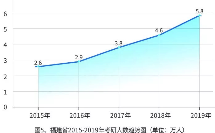 同樣考研人數(shù)近幾年翻番的還有四川省、廣東省、福建省等多個省份。
