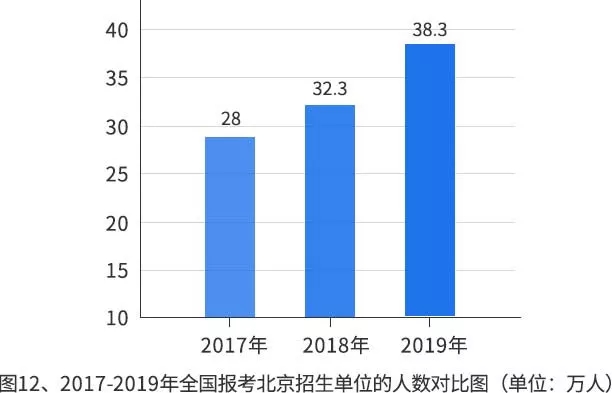 全國38.3萬人報(bào)考北京招生單位(不含推免考生),較2018年增長18.7%。