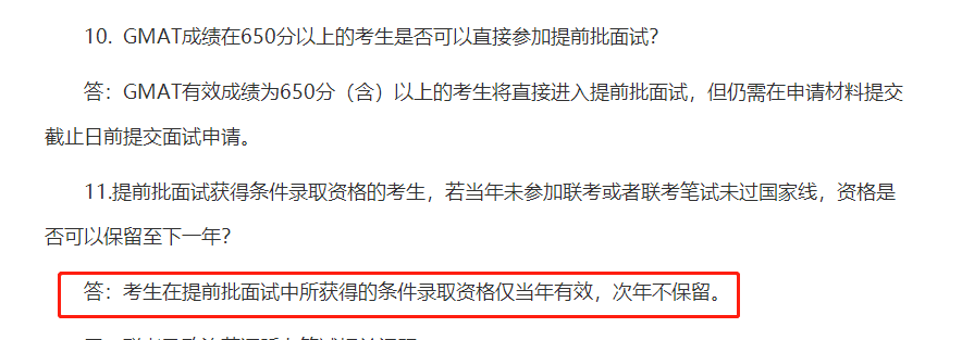 MBA提前面試成績只針對(duì)當(dāng)年報(bào)考有效。