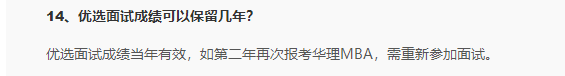 優(yōu)選面試成績當(dāng)年有效,如第二年再次報(bào)考華理MBA,需重新參加面試。