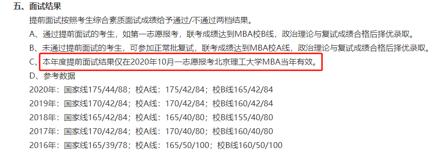 本年度提前面試結(jié)果僅在2020年10月一志愿報(bào)考北京理工大學(xué)MBA當(dāng)年有效。