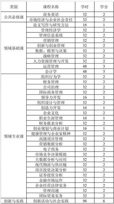 工商管理碩士(MBA)(125100)專業學位研究生培養方案