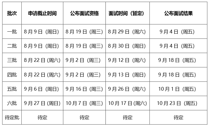 備注:1、在線申請(qǐng)報(bào)滿為止;安排如有變動(dòng),請(qǐng)以后續(xù)通知為準(zhǔn);面試形式另行通知;