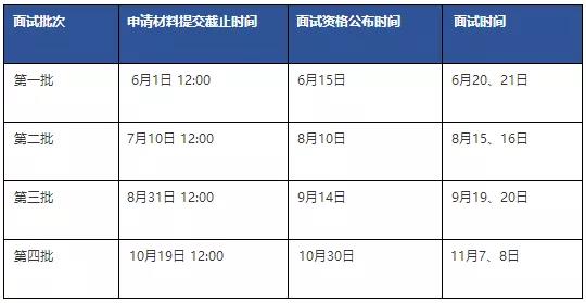 ②填寫和上傳申請材料。網上提交的申請材料包括:申請書、成績單、個人簡歷、收入證明、單位組織結構圖,推薦信(非必需)。申請材料的具體內容和要求見系統內說明。考生提交申請材料時需要選擇申請面試批次,并在所選批次申請材料提交截止日期前提交。各批次的申請截止時間、面試資格公布時間和面試時間見下方"面試批次"表。
