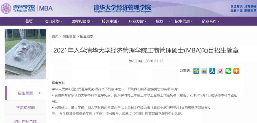 2021清華大學MBA招生簡章已于3月23日正式公布,以下為招生簡章全部內容。