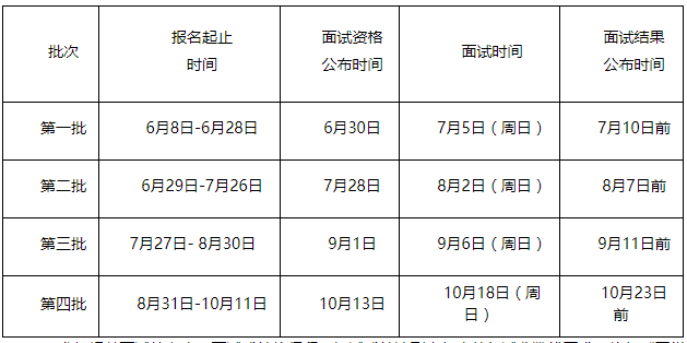 *備注:面試時間有可能隨招生進程有所變動,最終日期以我院面試前公布的日期為準,如該批次人數達到上限,系統可能會提前關閉;廣外商學院保留根據申請的實際情況和面試的進展情況臨時減少或增加面試批次的權利。