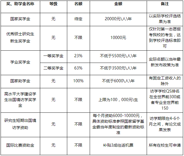 4、以上內容僅供參考,具體名額、金額及評選方式,以當年學校發布的最新政策條款為準。